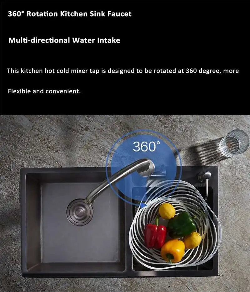Этот кухонный смеситель для горячей и холодной воды предназначен для вращения на 360 градусов, более гибкий и удобный.