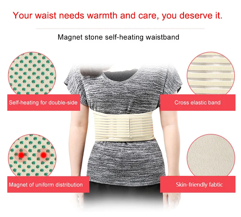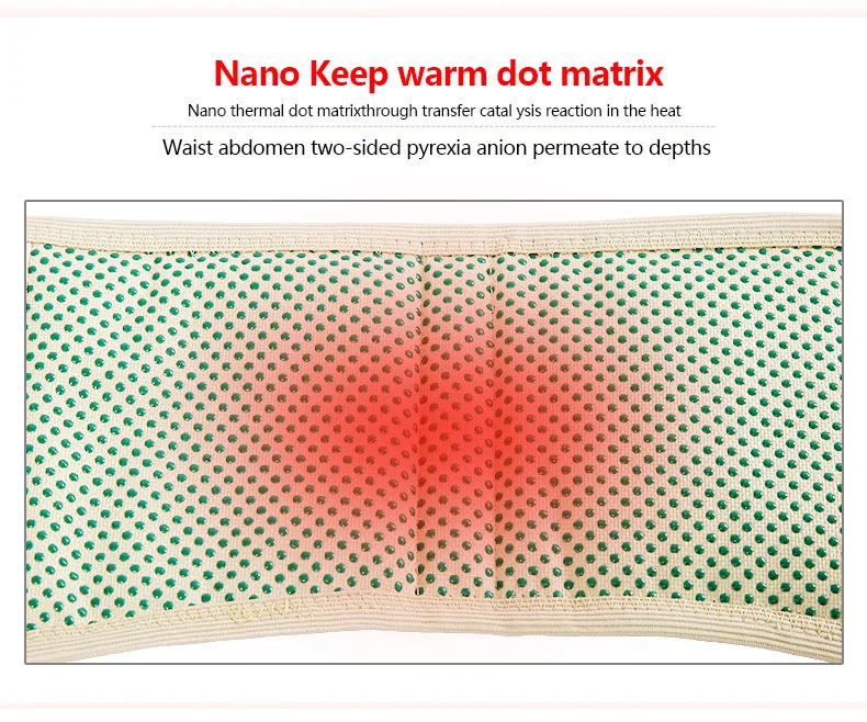 1. Высокая эластичность, широкая эластичная лента. 2. Вентилируемая и дышащая смесовая ткань. 3. Тепловая акупунктурная точечная матрица, нагревание быстро, длительный эффект. 4. Магнитотерапия увеличивает кровоток и облегчает боли, связанные с суставами и болью в спине. 5. Магнитный нагрев помогает расслабить мышцы и уменьшает усталость. 6. Поддерживая талию, поддерживать хорошее осанку, что влияет на потерю жира и поддерживать стройность каким-то образом