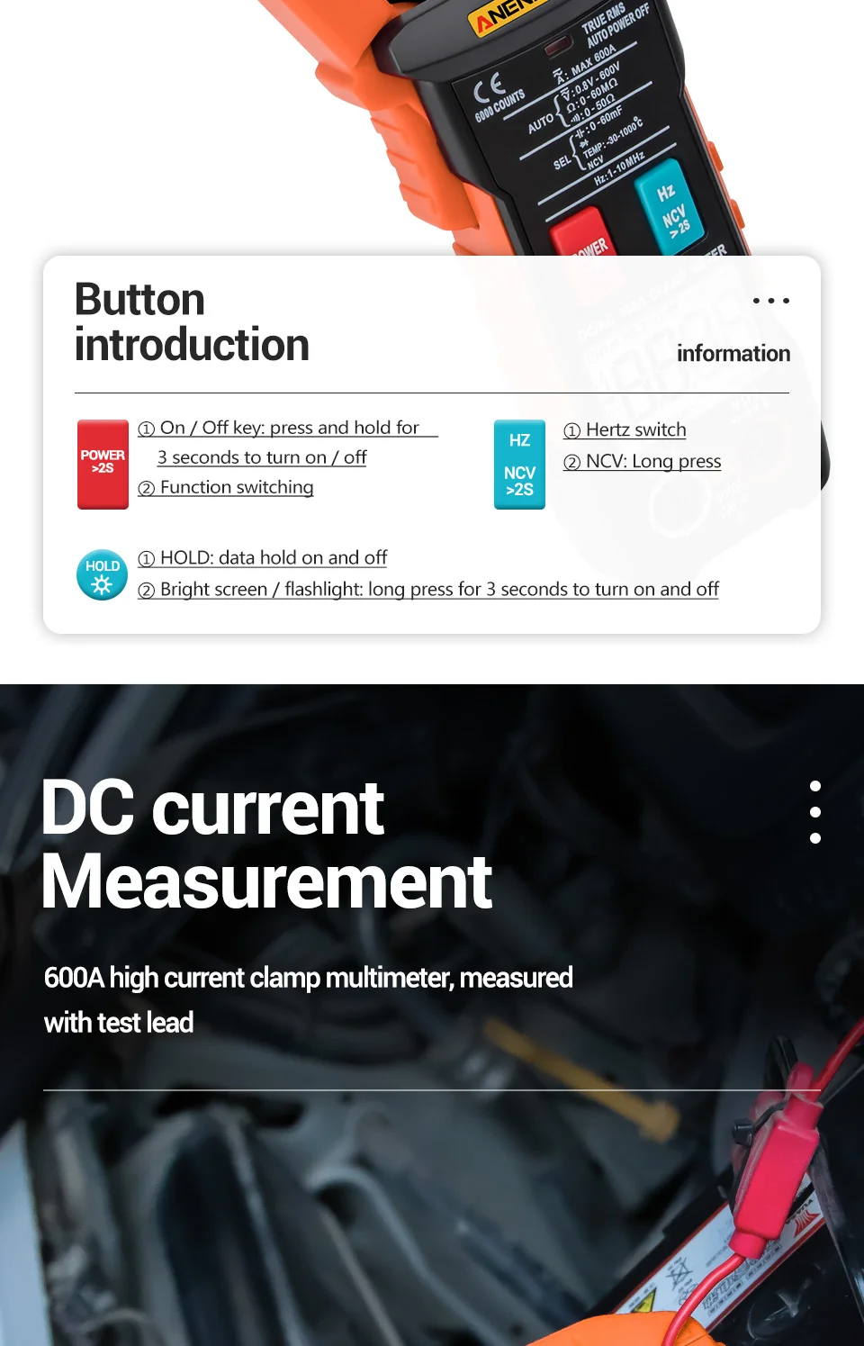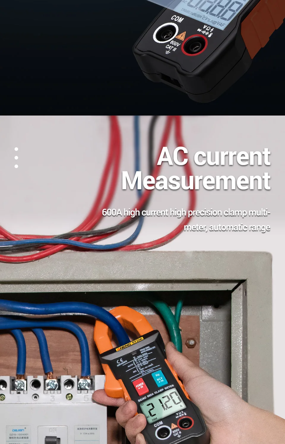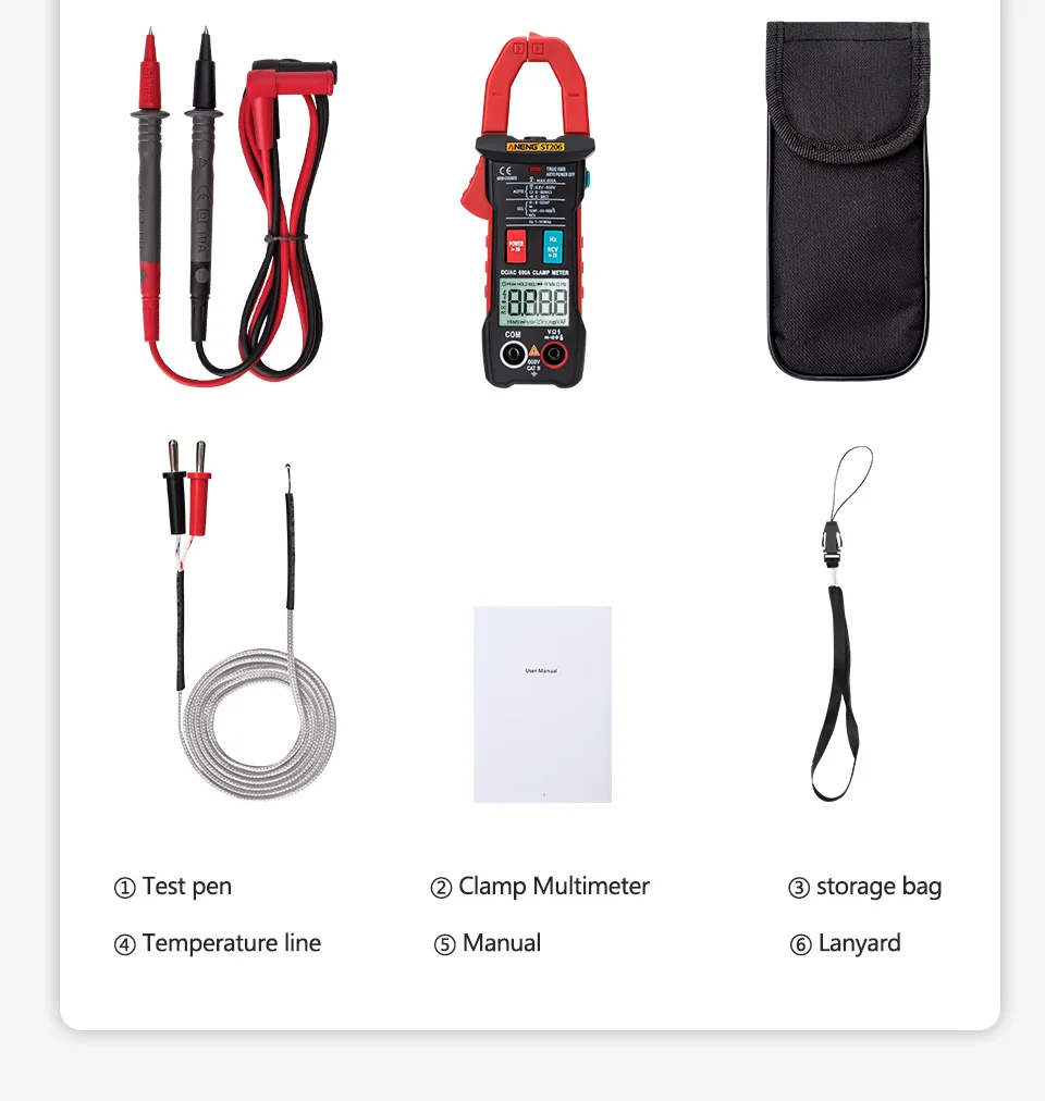 ANENG ST206 Цифровой мультиметр клещи 6000 отсчетов истинный RMS Amp DC/AC Ток