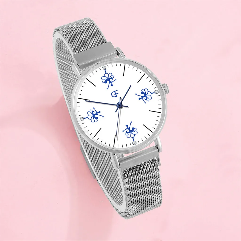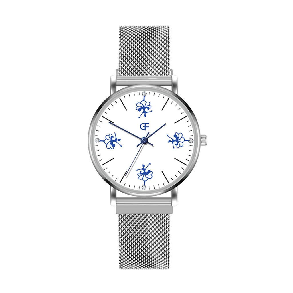 Женские Модные магнитной застёжкой часы с ремешком-сеткой Кварцевые Аналоговый Круглый наручные часы