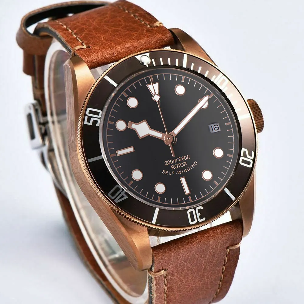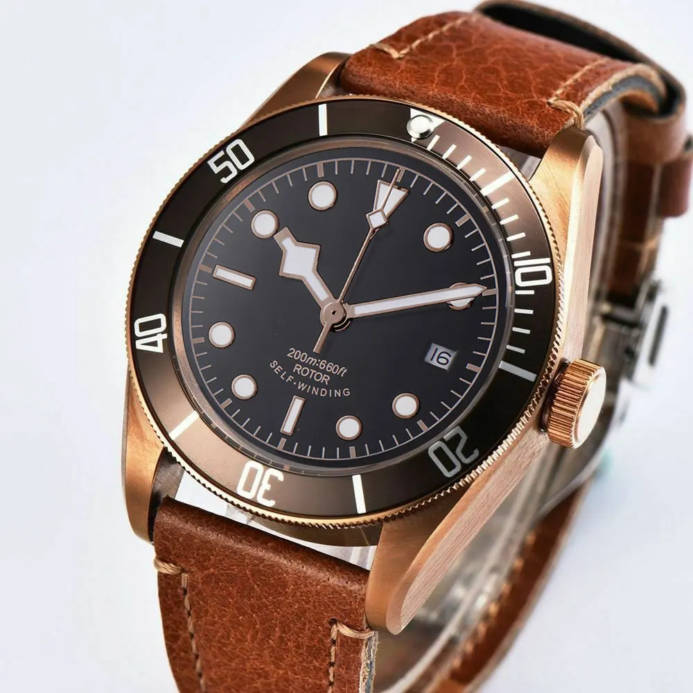 Бренд: Corgeut Механизм: самонамотка (чайка orMiyota8215 движение вы выбираете) Материал корпуса: корпус из нержавеющей стали 316L с покрытием из кофе PVD Диаметр корпуса: 41 мм без короны Толщина: 12,5 мм Цвет циферблата: черный стерильный циферблат с розовыми золотыми метками Ободок: сплав с кофейным ободком Браслет: ремешок из коричневой кожи Тип застежки: раскладная пряжка Переднее стекло: сапфировое стекло Заднее стекло: Твердый Чехол Светящийся: зеленый Водонепроницаемость: 100 м