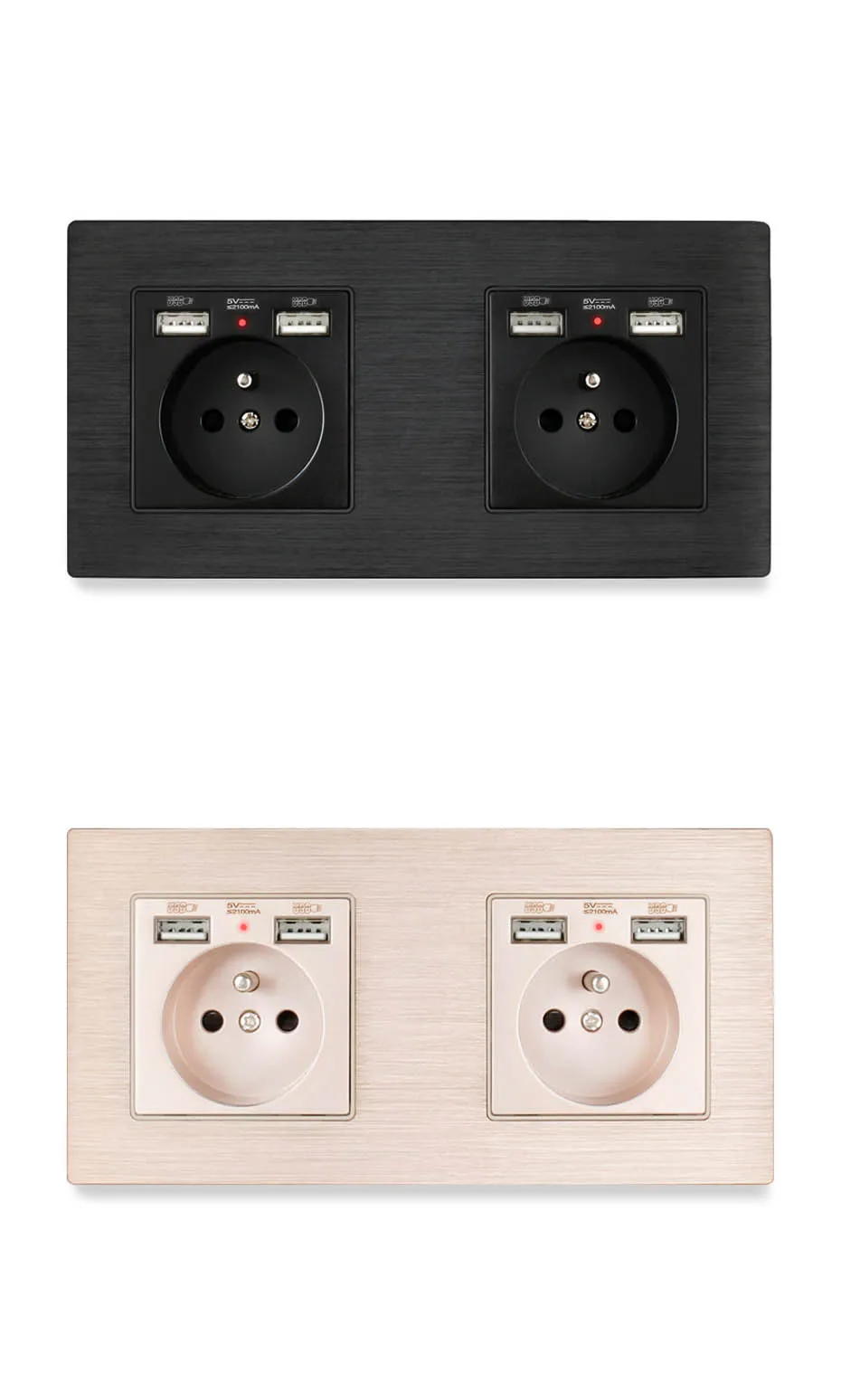 Esooli французский стандарт черная алюминиевая металлическая панель настенная розетка с 4 usb зарядным портом 2.1A 16A для мобильного телефона розетка