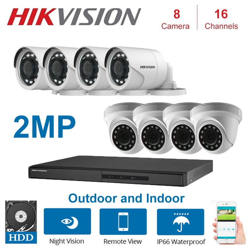 1 * DS-7216HGHI-F1/N 16 каналов DVR (Который может поддерживать Макс 16 шт 2MP камеры) 4 * DS-2CE56D0T-IRF камеры 4 * DS-2CE16D0T-IRF камеры 8*12 В адаптер питания 1 * HDD под заказ