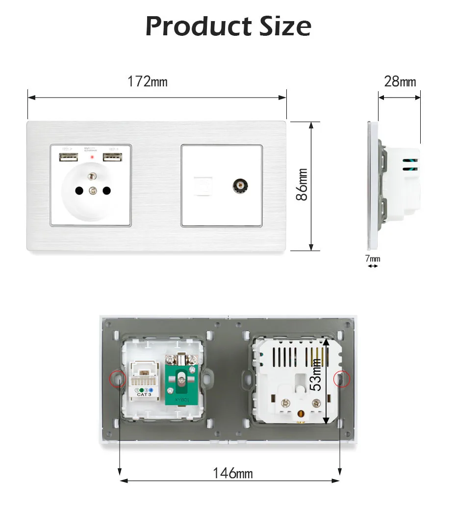 Esooli французская стандартная розетка RJ11 Tel гнездо соединителя телефона с женским ТВ разъемом розетка черная алюминиевая металлическая панель