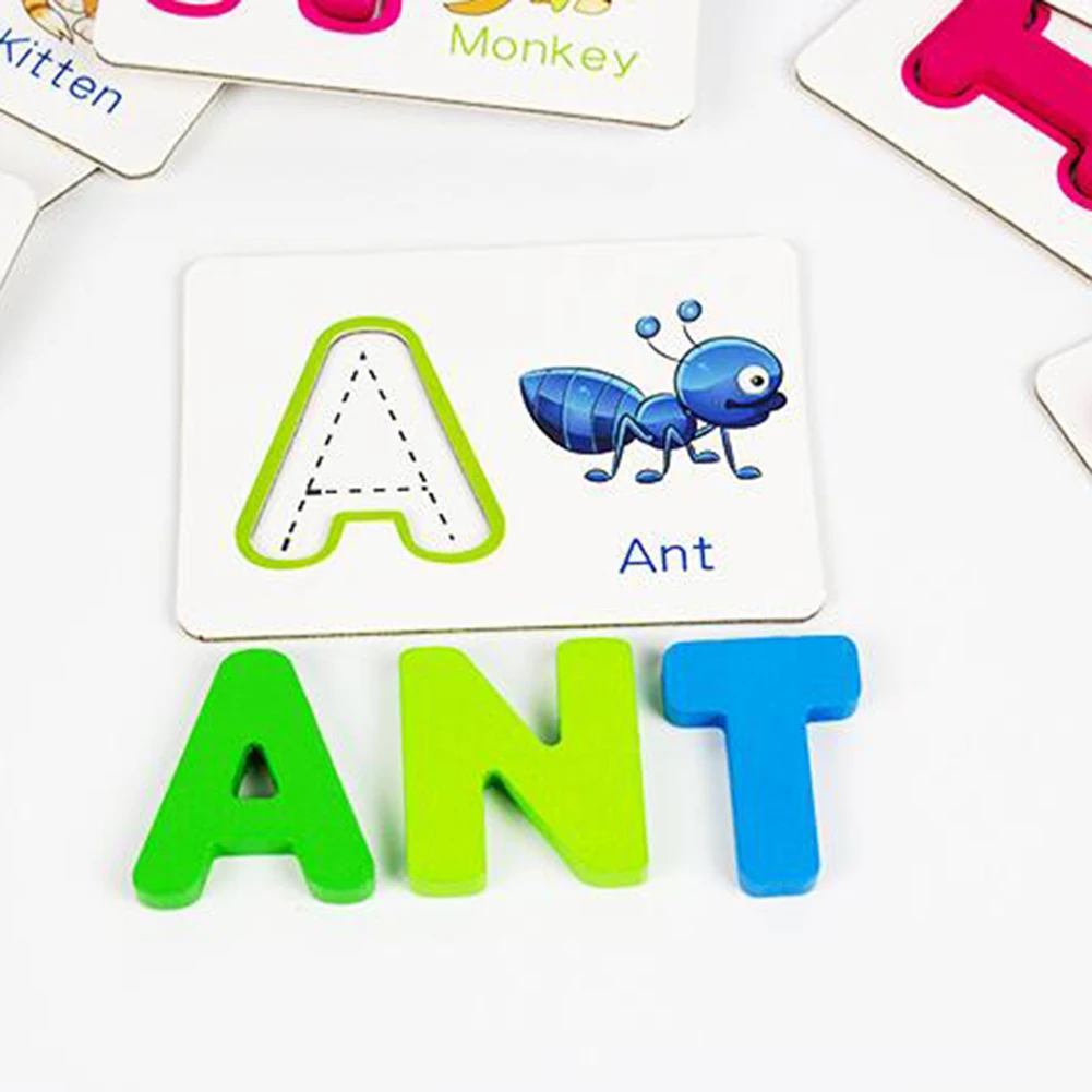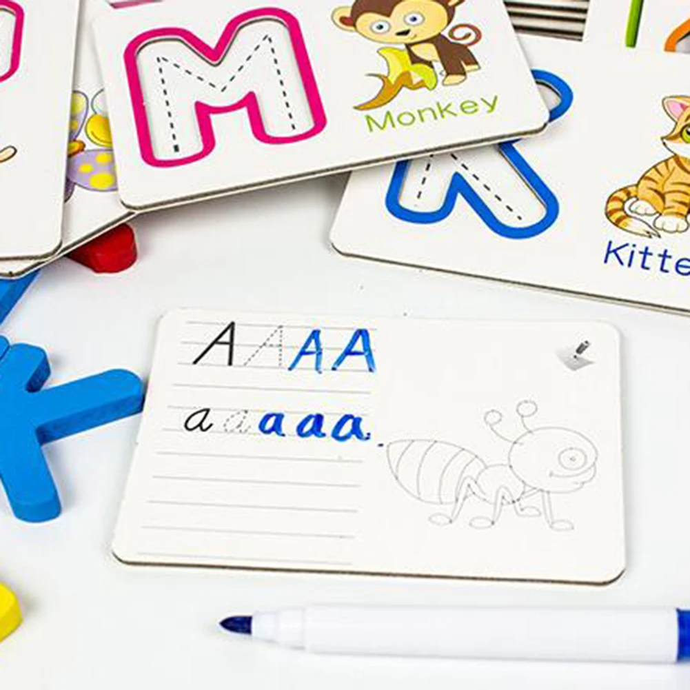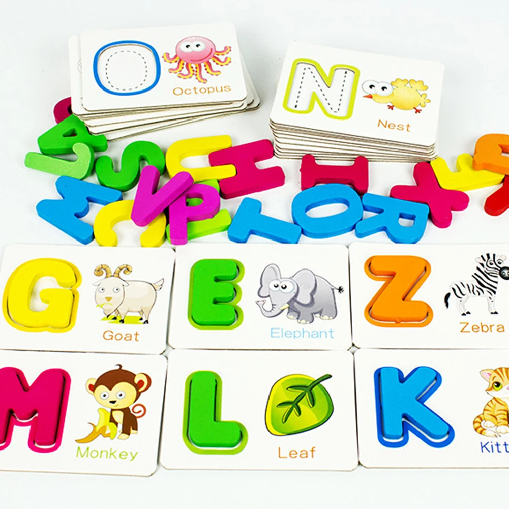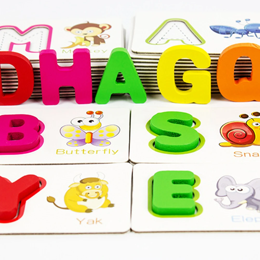 51 шт. деревянные английские алфавитные головоломки флэш-бумажные карты с ручкой, Обучающие Детские игрушки, школьные принадлежности для учеников детского сада