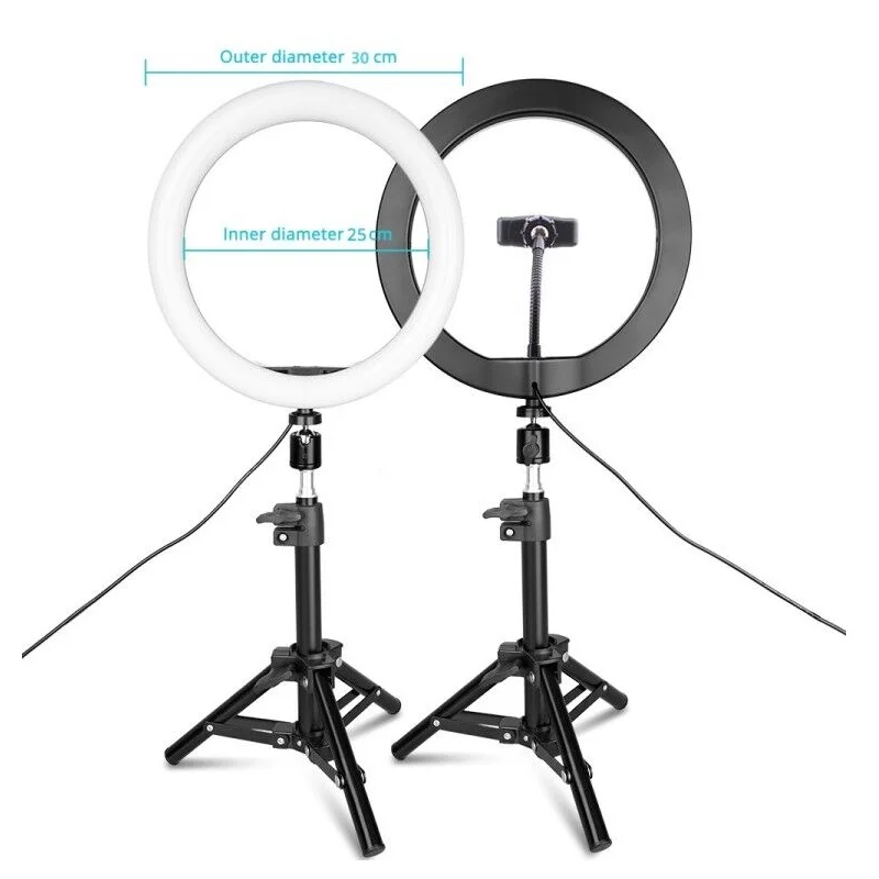 Кольцевой светильник посылка список:1x светодиодный кольцевой светильник1x разъем1x USB разъем1x держатель для телефона1x Штатив 45 см