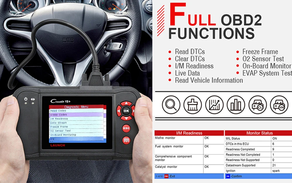 Этот сканер поддерживает все 10 тестовых режимов функций OBD2, таких как чтение и очистка DTCs, графические поток данных, стоп-кадр, I/M готов, Тест датчика O2, бортовой тест монитора и многое другое, чтобы проверить уровень выбросов и выключить MIL.