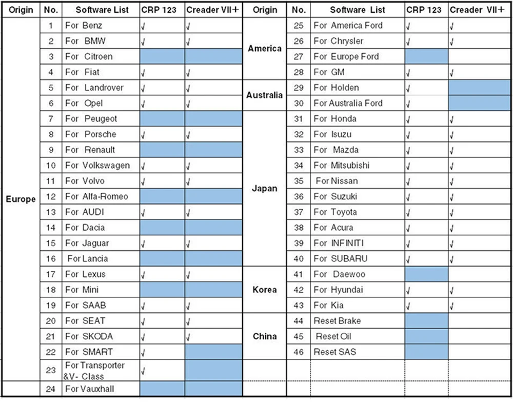 Launch X431 Creader VII + Поддержка моделей автомобилей: