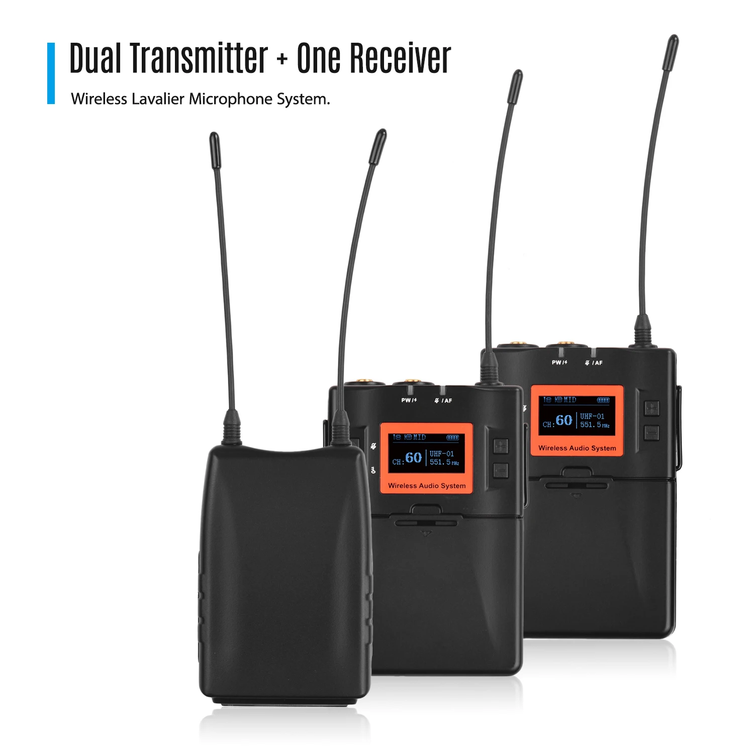 Беспроводная микрофонная система UHF: система включает в себя два передатчика и один приемник, обеспечивая беспроводное шифрование связи, радиус действия до 100 м (под открытым небом).