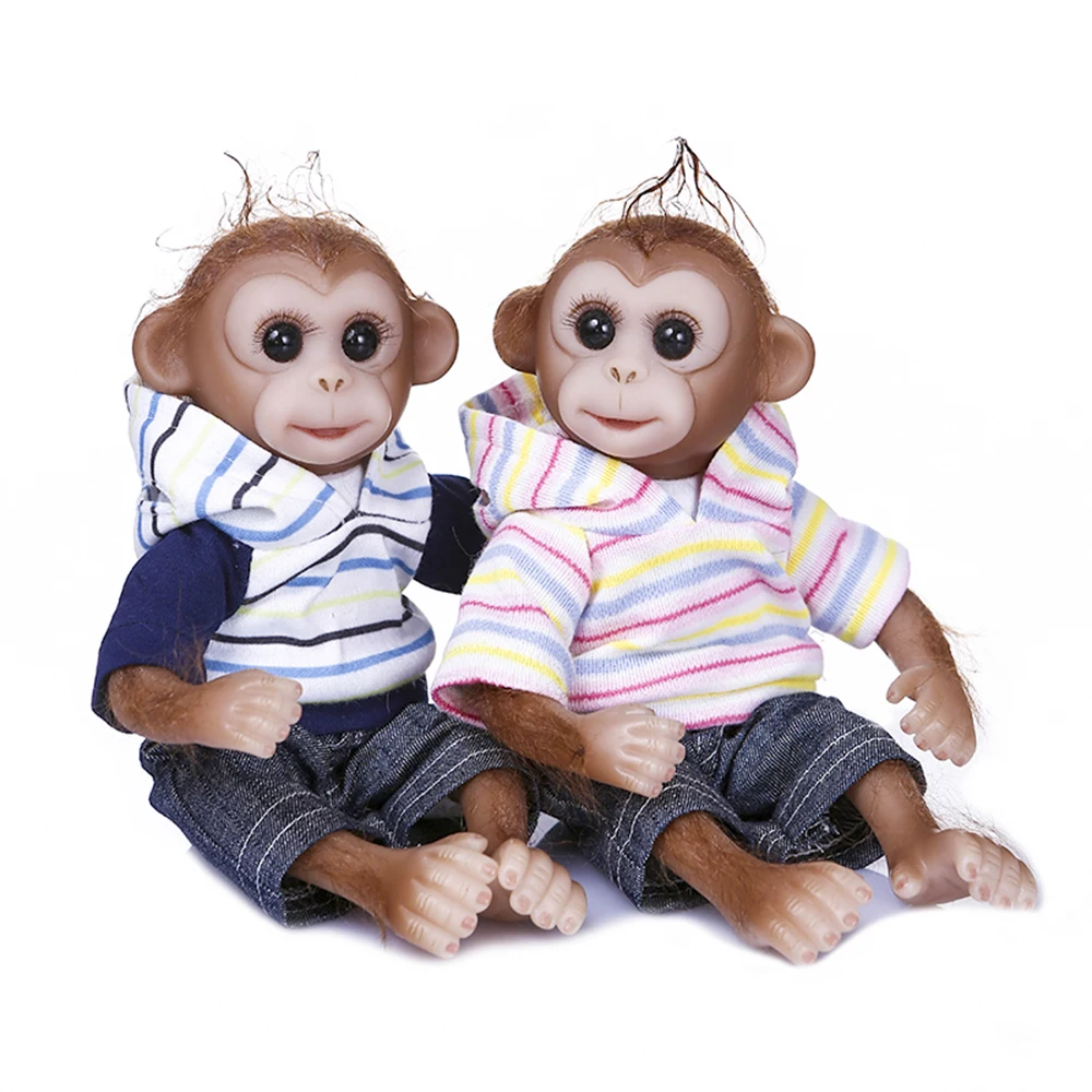 Эта детская кукла обезьяны выглядит как настоящая, так же, как с принтом «обезьяна». Изготовлено из силиконового винила и полипропиленового хлопка, в настоящей детской одежде, 8 дюймов мини-размер от головы до ног, как настоящая детская обезьянка. Идеальные детские игрушки, подарки на Рождество и день рождения, Коллекционирование кукол.