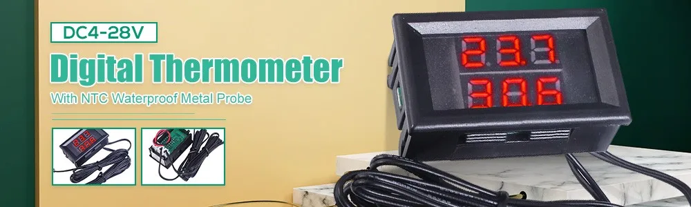 DC4-28V цифровой термометр с NTC Водонепроницаемый металлический зонд Температура Сенсор тестер для автомобиля комнатный термостат 12V W1209WKUSD 0,99-2,51/шт.