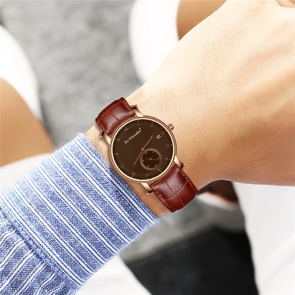 Мужские часы, мужские часы в простом стиле, Роскошные мужские часы с кожаным ремешком, деловые кварцевые часы на Рождество и новый год
