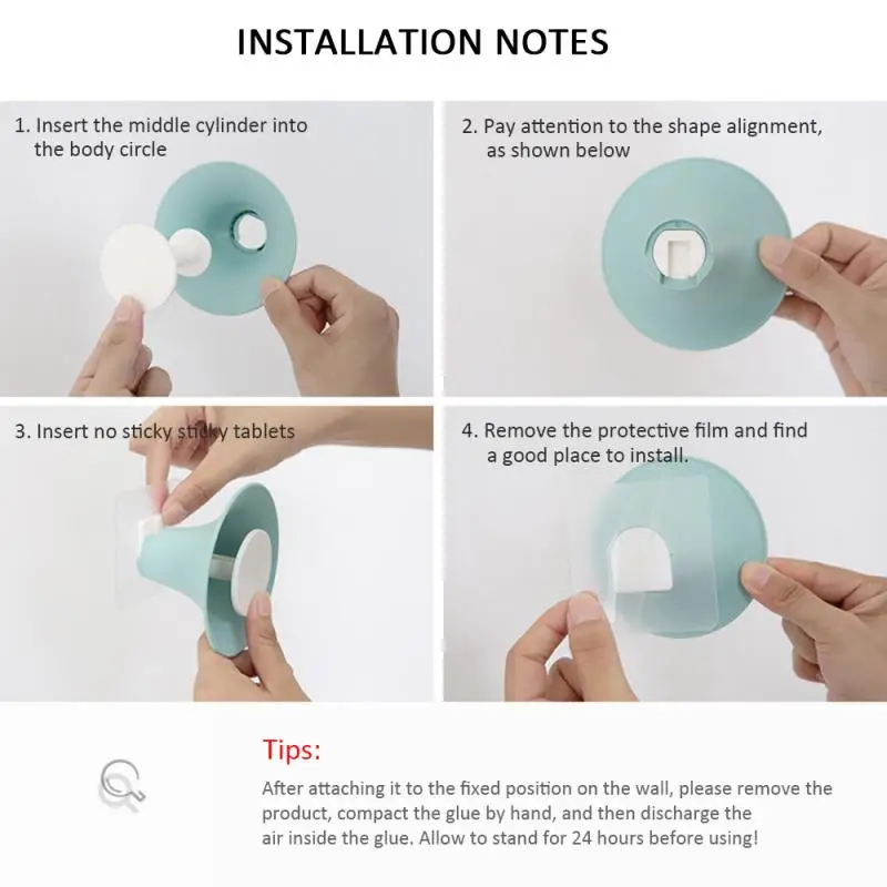 После закрепления его в фиксированном положении на стене, пожалуйста, удалите изделие, компактизируйте клей вручную, а затем выньте воздух внутри клея. Позвольте стоять в течение 24 часов перед использованием!