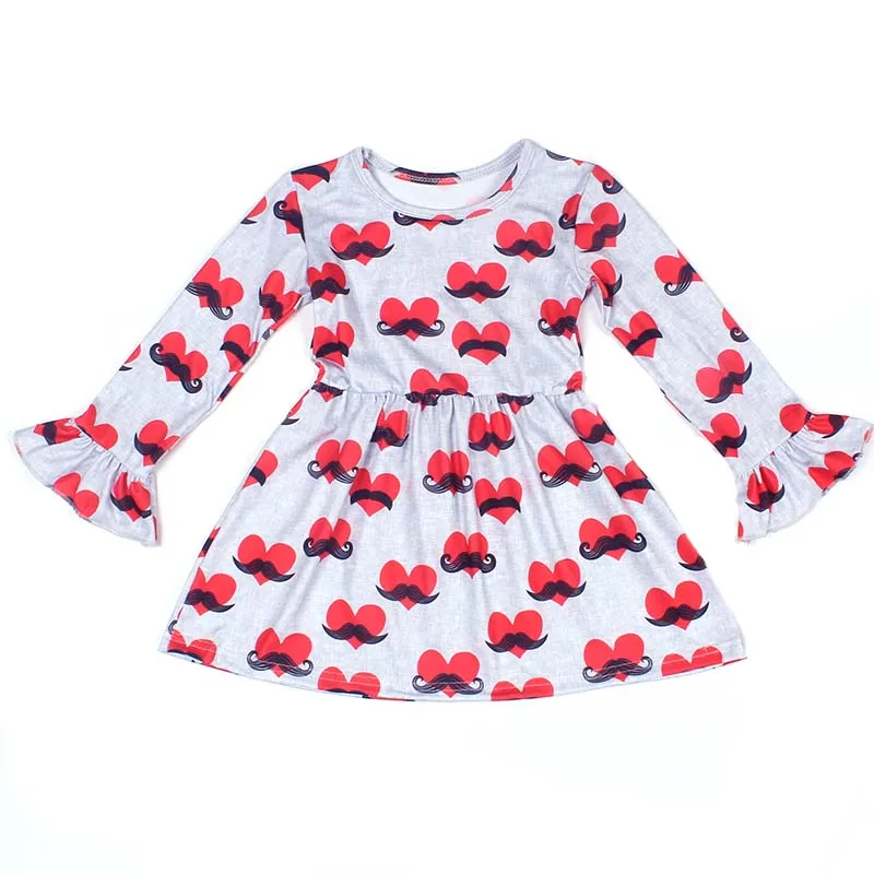 Cute Kids Princess Dress Girls Heart Shape Print Flare Sleeve Dress Milk Silk Girls Valentine'S Day Dress Chidlren Sweet Dress