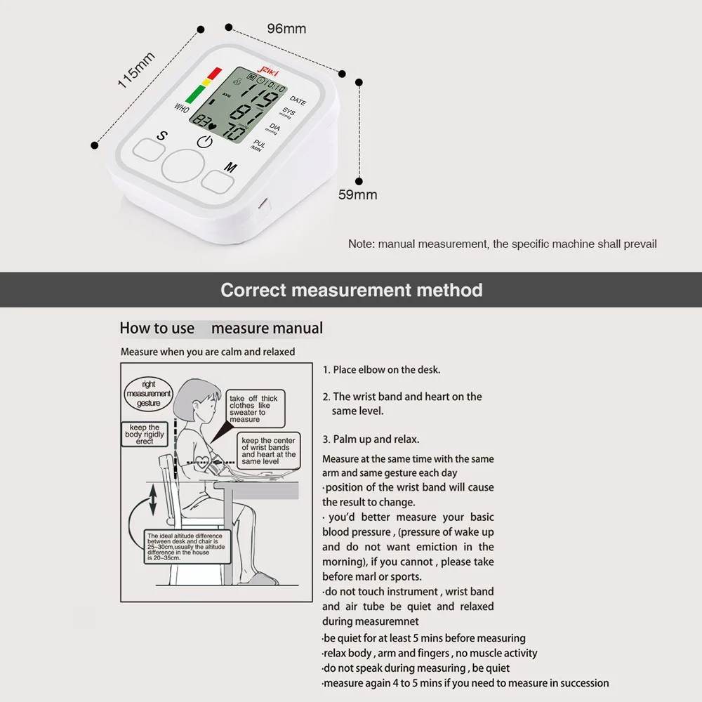Память измерений для 2 пользователей:Поддерживает два пользователя и 99 памяти каждого пользователя, автоматическое хранение результатов измерений, поможет вам запомнить дневное значение артериального давления.