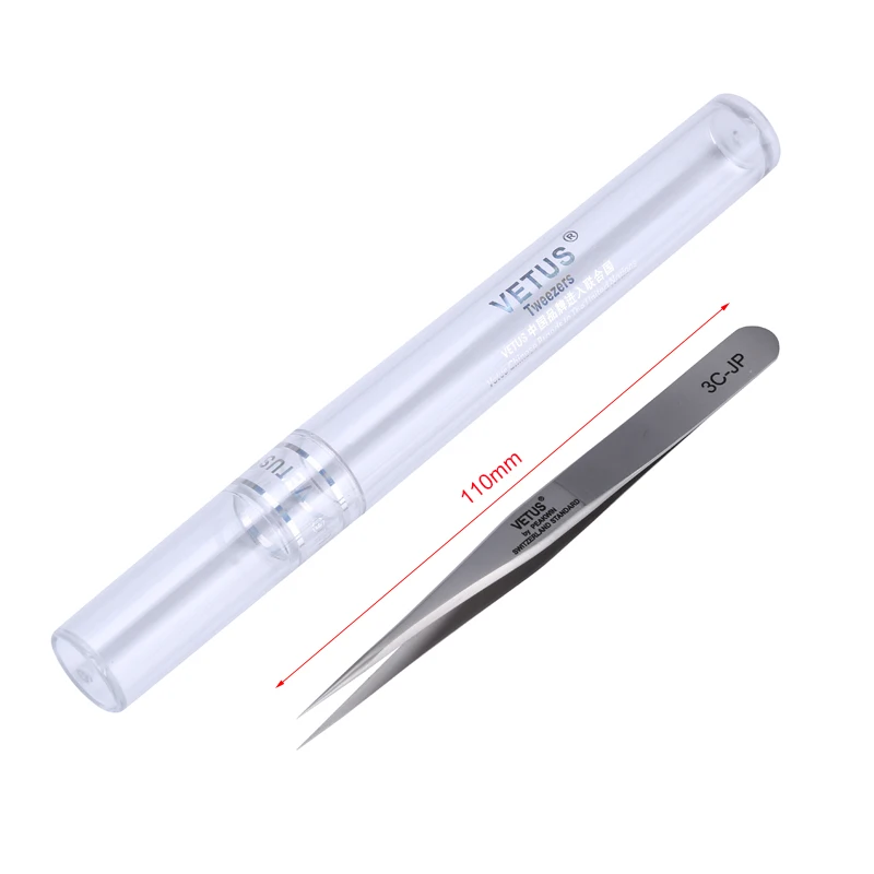 Особенность серийного пинцета Vetus JP: 1. Принимает передовую толстую нержавеющую сталь, общую термическую обработку, высокую твердость (HRC 45). 2. Поверхность полированная и шлифованная матовая обработка. 3. Немагнитная, износостойкая, коррозионная стойкость, высокая температура, Сверхтонкая, высокоточная, анти-кислота. 4. Характеристики: высококачественный выбор материала, после нескольких циклов тестирования, лучший размер выбирается, чтобы дать удобный опыт, при этом значительно повышает эффективность работы пользователя; Пинцет сам по себе Немагнитный, подходит для использования в прецизионной электронике и ремесленной промышленности. 5. Функции: сделай сам вручную, обслуживание мелких деталей, мобильный телефон, обслуживание деталей, компьютерное обслуживание, обслуживание интегральной схемы