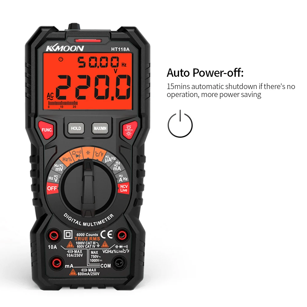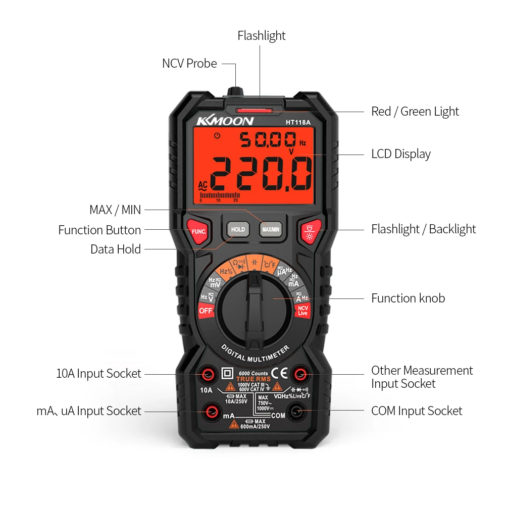 Широкий диапазон измерений: для измерения напряжения постоянного/переменного тока, постоянного/переменного тока, сопротивления, емкости, диодного теста, NCV теста, живого теста, частоты, температуры и т. Д.