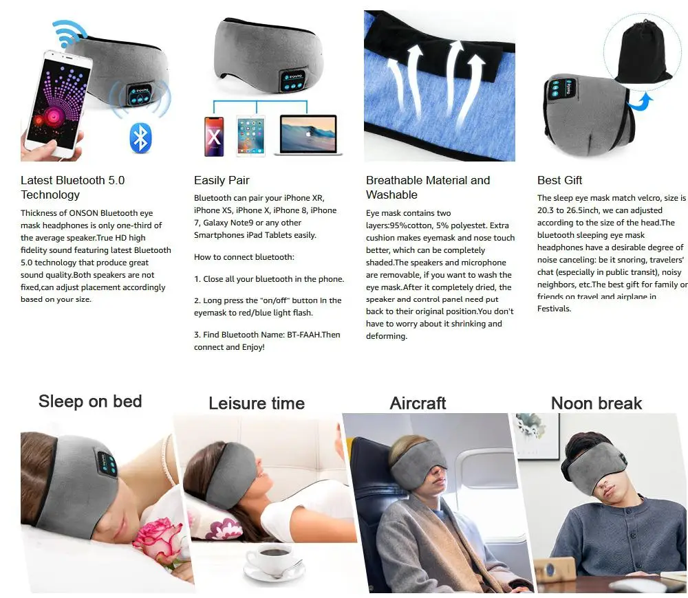 Обновленная перезаряжаемая батарея usb, встроенная высокопроизводительная батарея емкостью 200 мАч. Эти наушники заряжаются через USB (кабель входит в комплект поставки) около 2-2,5 часов обеспечивают более 8 часов время работы в режиме воспроизведения, без звуковых сигналов после включения питания закончились. У вас будет очень хороший сон. Это красный светильник при зарядке и синий светильник при полной зарядке. Примечания: Пожалуйста, проверьте usb-кабель, если он не может работать для зарядки.