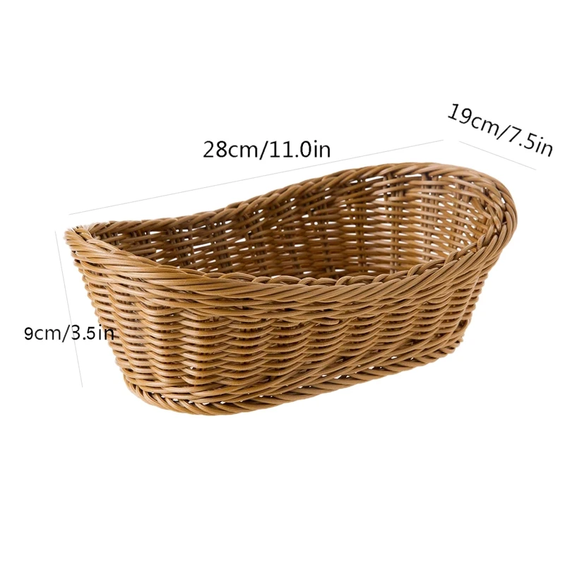 Безопасный и гладкий: Изготовлен из безопасного искусственного материала ротанга, эта корзина для хлеба является здоровой для хранения пищи. Когда вы используете эти корзины, его гладкий тканый пояс может защитить вашу руку от вреда. Безопасный выбор для вас.