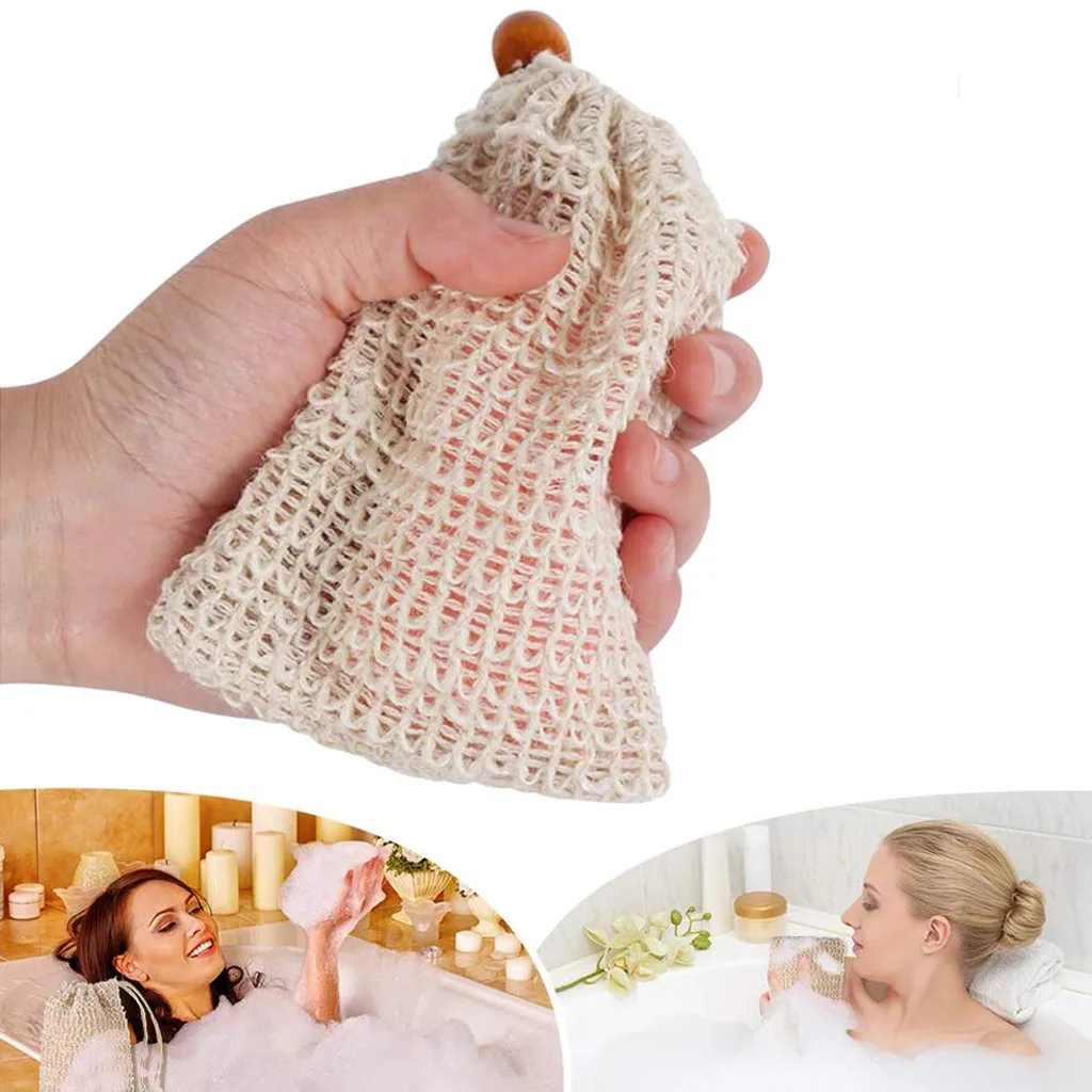 Модный красивый мыльный мешок из натурального сизаля для душа, очищенная поролоновая сетка, удобная блистерная сетка, защитный мешок для мыла, поролоновая сетка