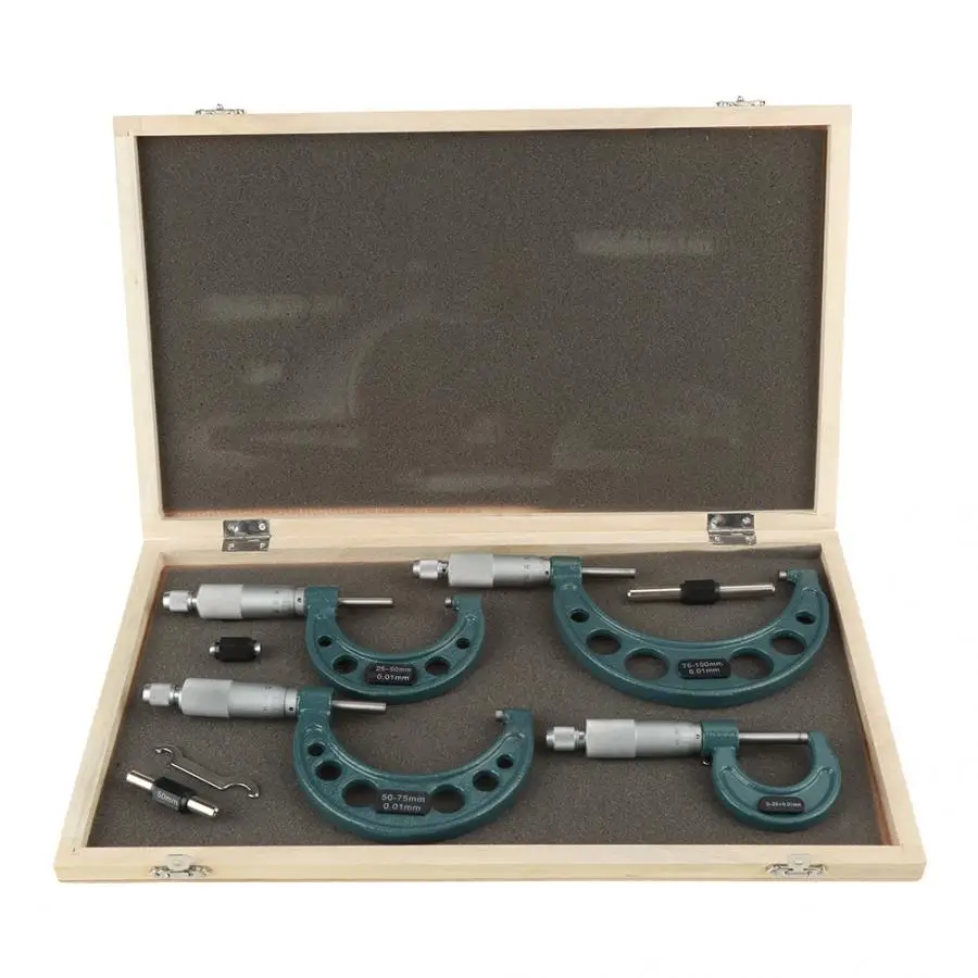 4 шт. 0-100 мм наружные микрометры, толщиномер, измерительный штангенциркуль с Чехол