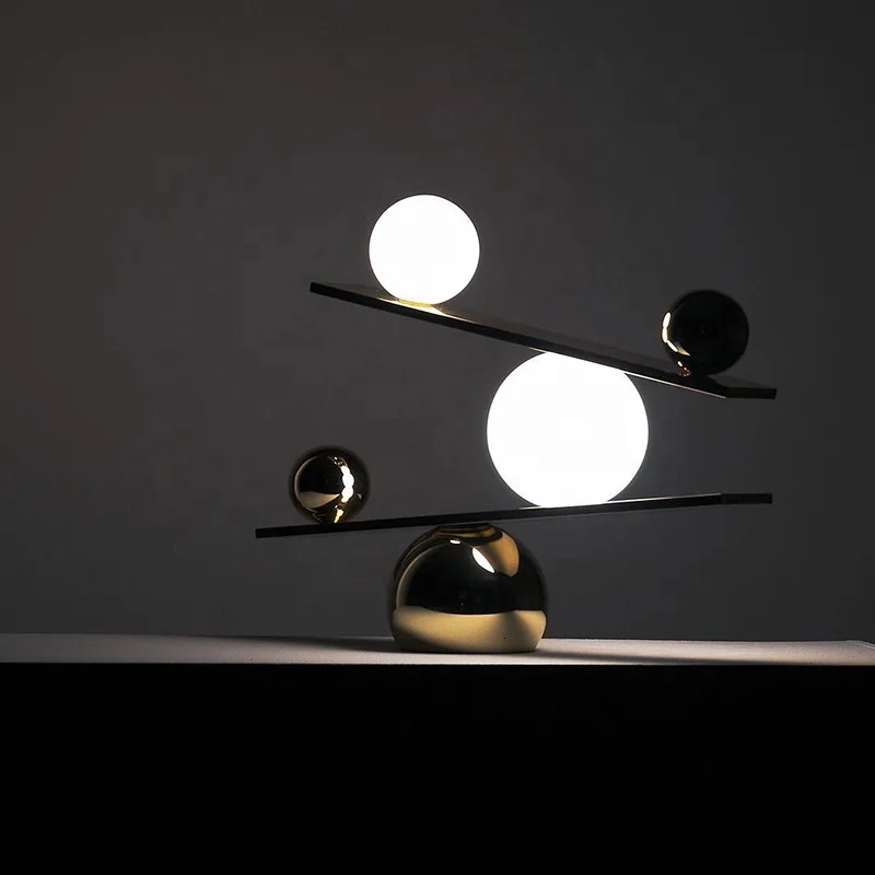 Черный Утюг + белое стекло баланс настольная лампа для отеля дома Спальня прикроватная