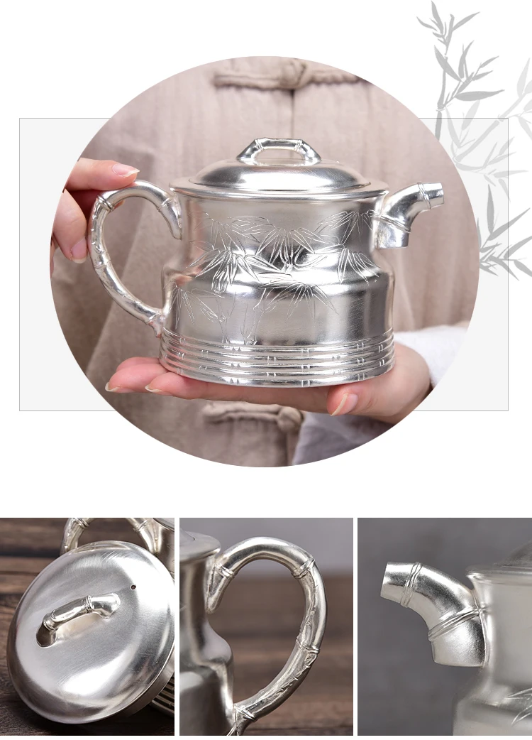 2. Серебряный чай имеет более мягкое качество воды, чем Железный чайный сервиз, а чай более ароматный, а чайный суп более чистый. Ионы серебра и натрия, выпущенные серебряным чаем, когда кипяченая вода оказывает дезинфицирующий эффект.