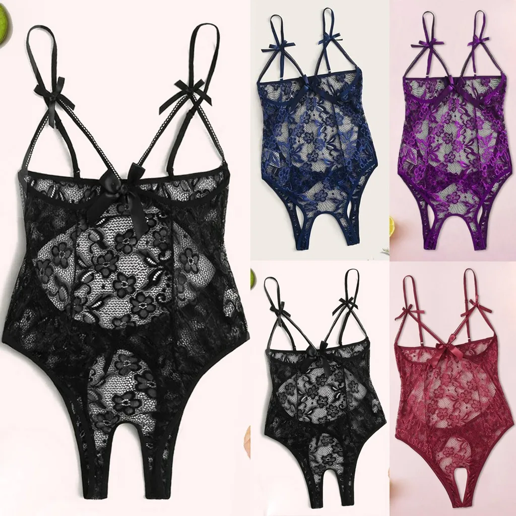 Новая мода, женское сексуальное боди размера плюс, бант, кружево, открытая спина, открытая промежность, Тедди, боди, нижнее белье-комбинезон для женщин