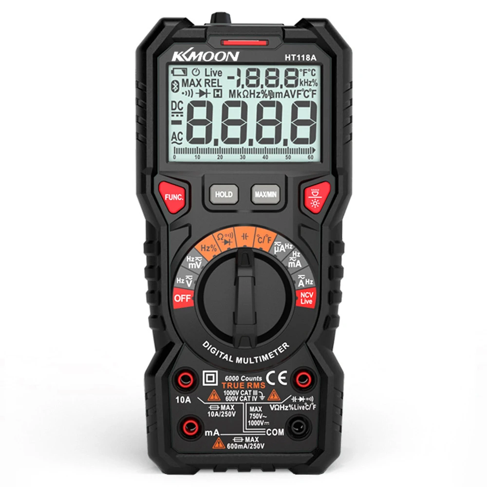 Широкий диапазон измерений: для измерения напряжения постоянного/переменного тока, постоянного/переменного тока, сопротивления, емкости, диодного теста, NCV теста, живого теста, частоты, температуры и т. Д.