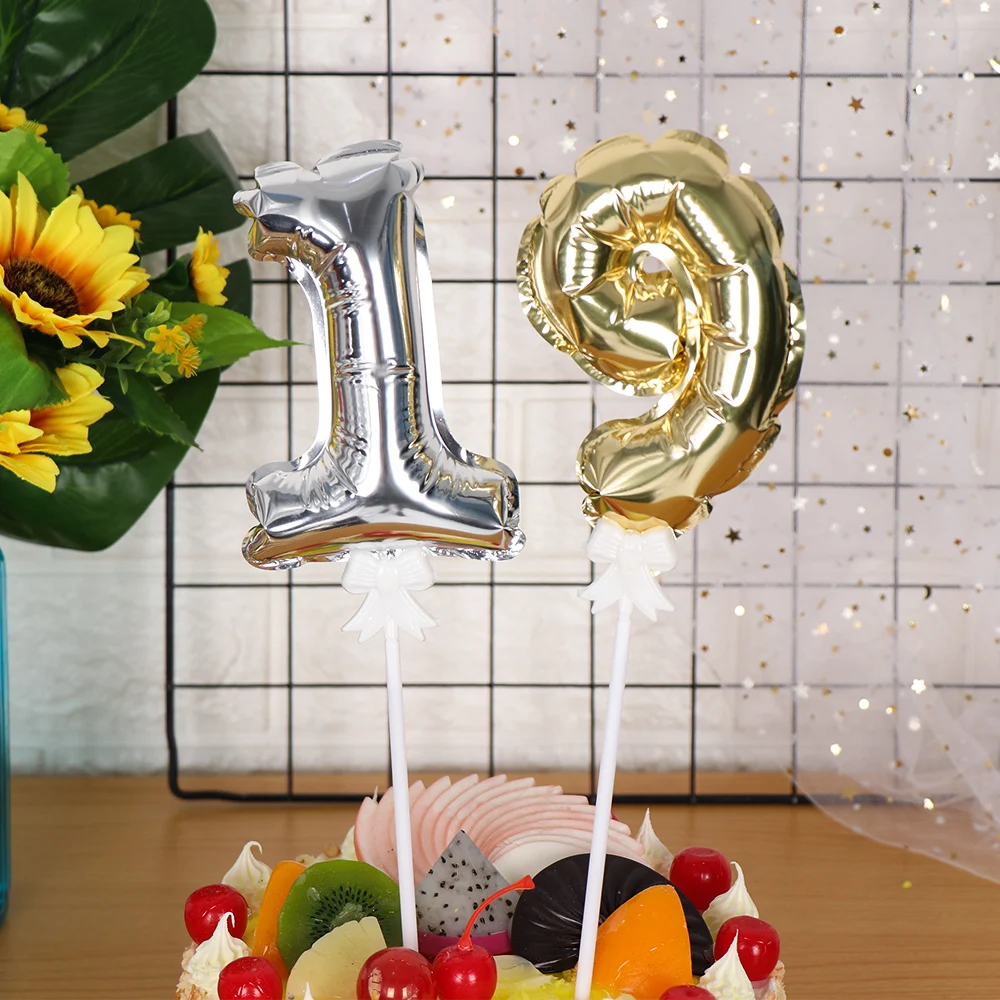 0-9 5 дюймов цвета: золотистый, серебристый Фольга шара с цифрой торт Топпер свадебный Декор вечерние на день рождения для детей Юбилей флажки для торта поставки