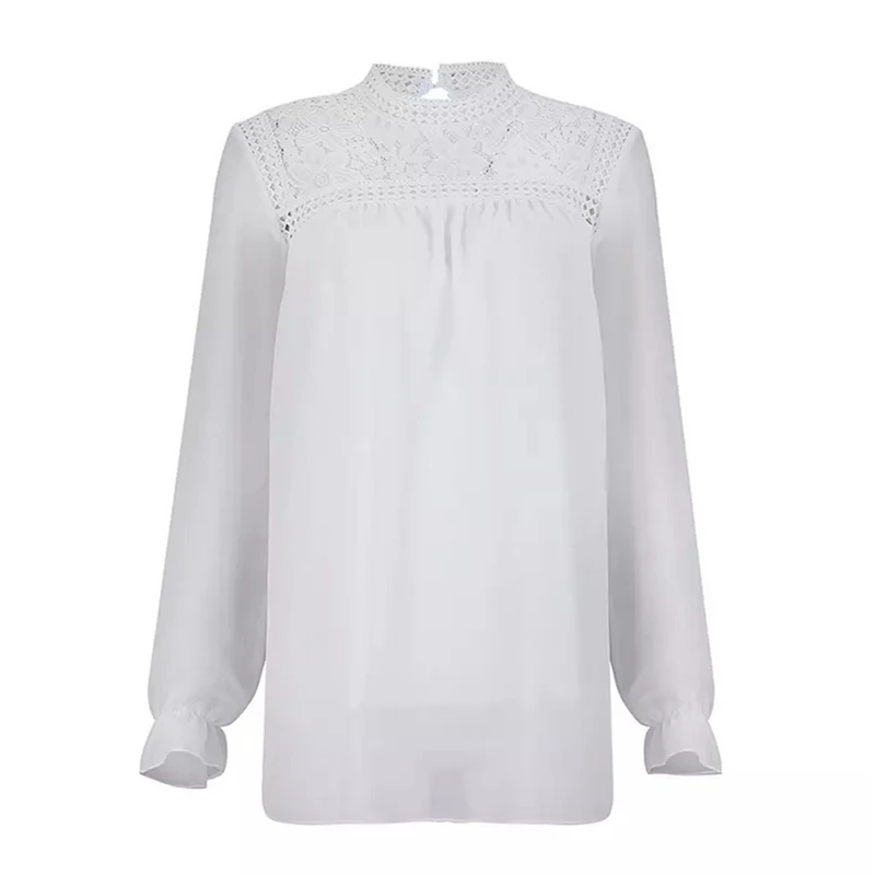 Женская кружевная Свободная блузка с длинным рукавом, повседневный джемпер, футболка, базовая футболка