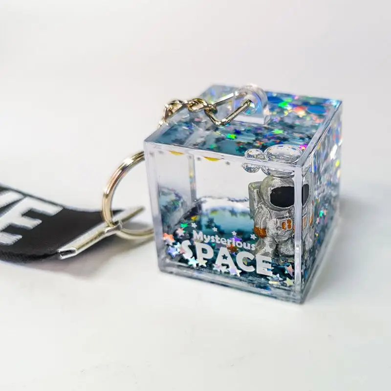 Mysterious Space Quicksand Square Keychain Astronaut Bag Charm Keyring Jewelry
