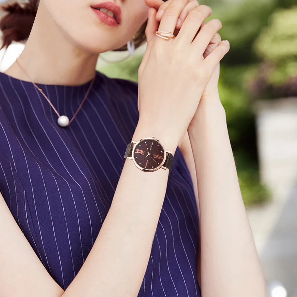 Модные Простые женские часы повседневные цифровые римские весы Звездный циферблат кожаный ремешок кварцевые женские часы