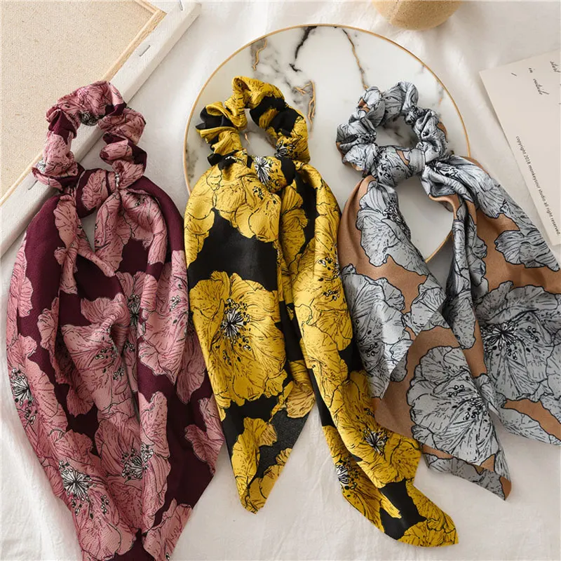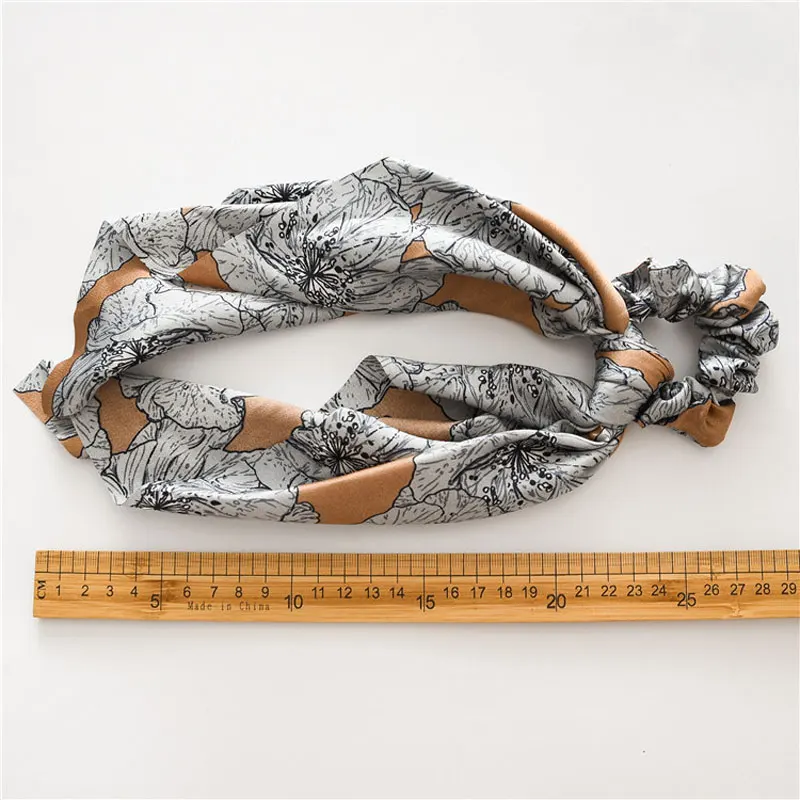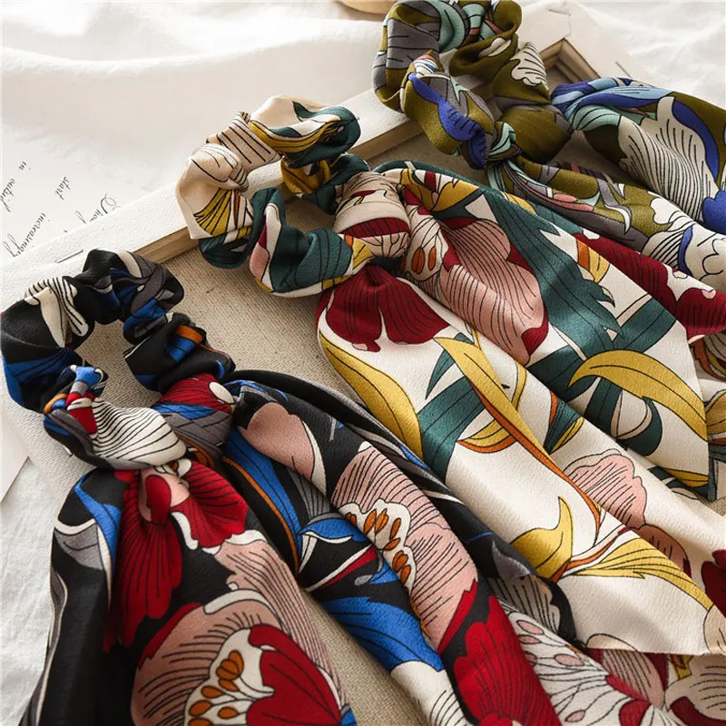 Женские бантики для волос, резинки для волос с цветочным принтом, шарф для волос, эластичные резинки для волос для девочек, винтажные резинки для волос, аксессуары для волос