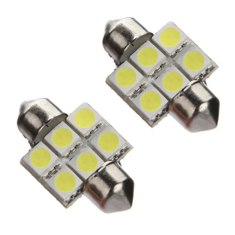 6-SMD5050 светодиодный купол с фестонами автомобильный Светильник лампы 31 мм дневные ходовые огни 12 V Белый