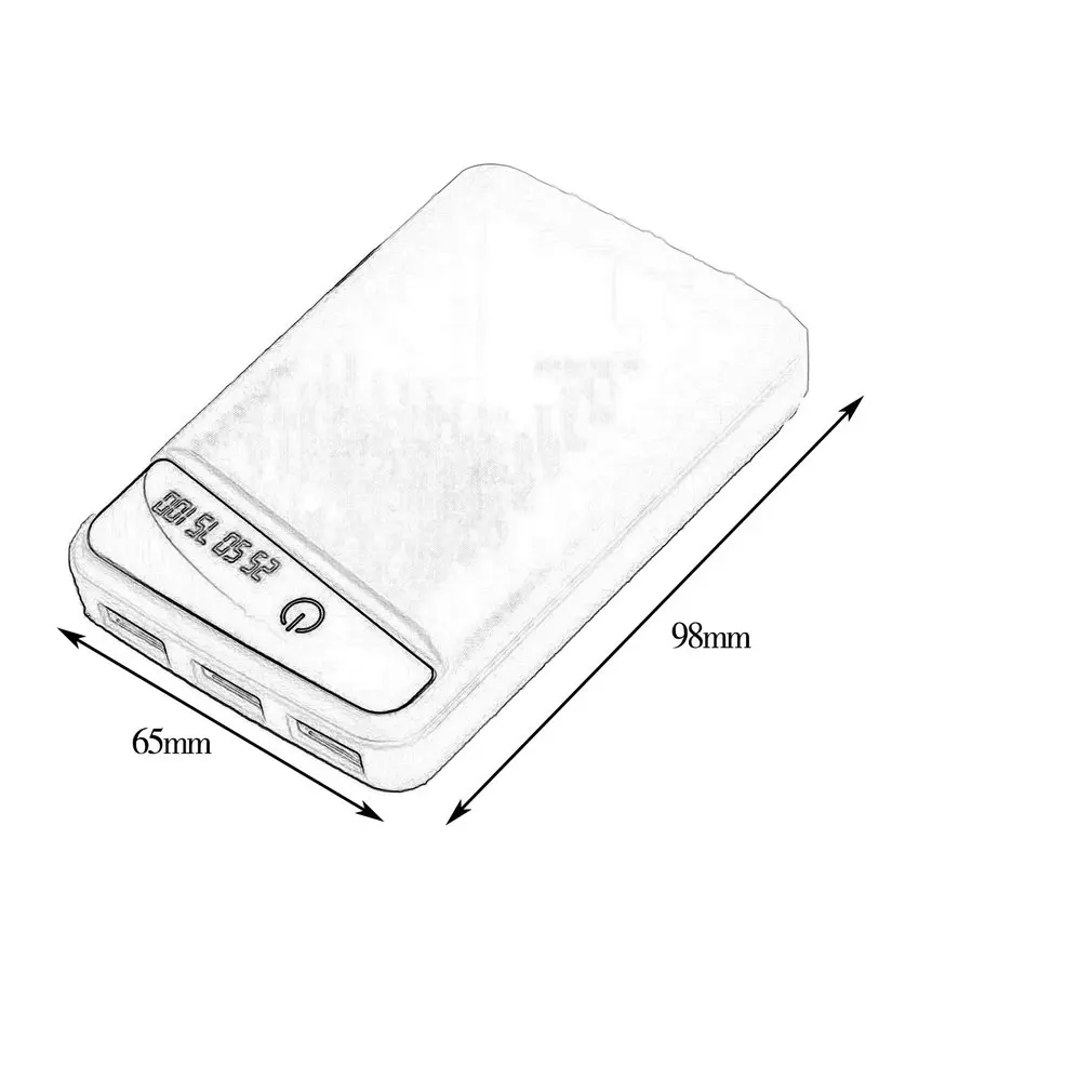 Features: Made of premium material, it is wear resistant and durable. LCD digital display, easy for you to monitor the real-time battery bank capacity, real-time voltage and current. Over-discharge protection, no reverse polarity protection! Can change to 5V/1A quick charge mode. Creative design, easy and convenient to use. Can be installed 3x 18650 lithium battery(not included). Specification: Input: 5V1A Output: 5V1A Battery model: 18650 Loadable batteries: 3 sections Color: black / white / blue/ pink Size: 22mm*65*98mm Weight: 40g Package List: 1 x Power Bank Kits(battery is not included,only the case)