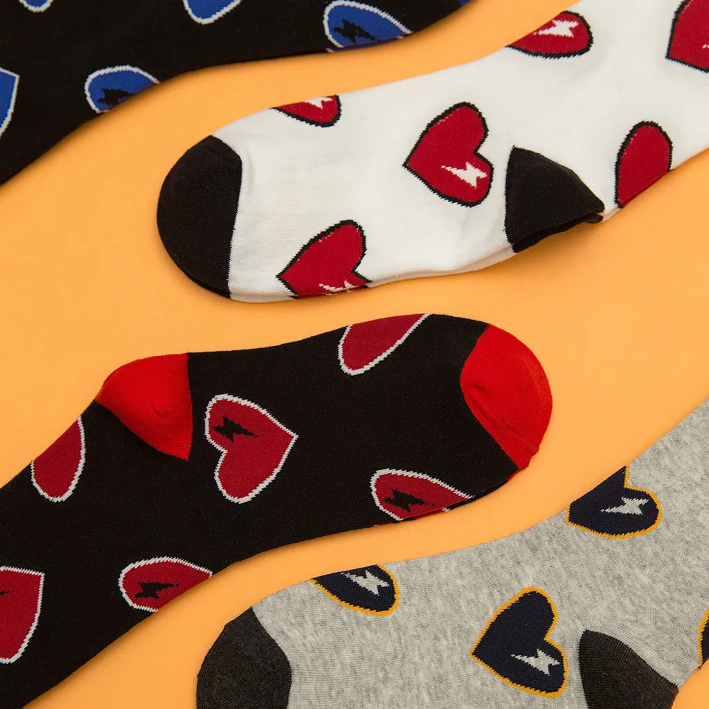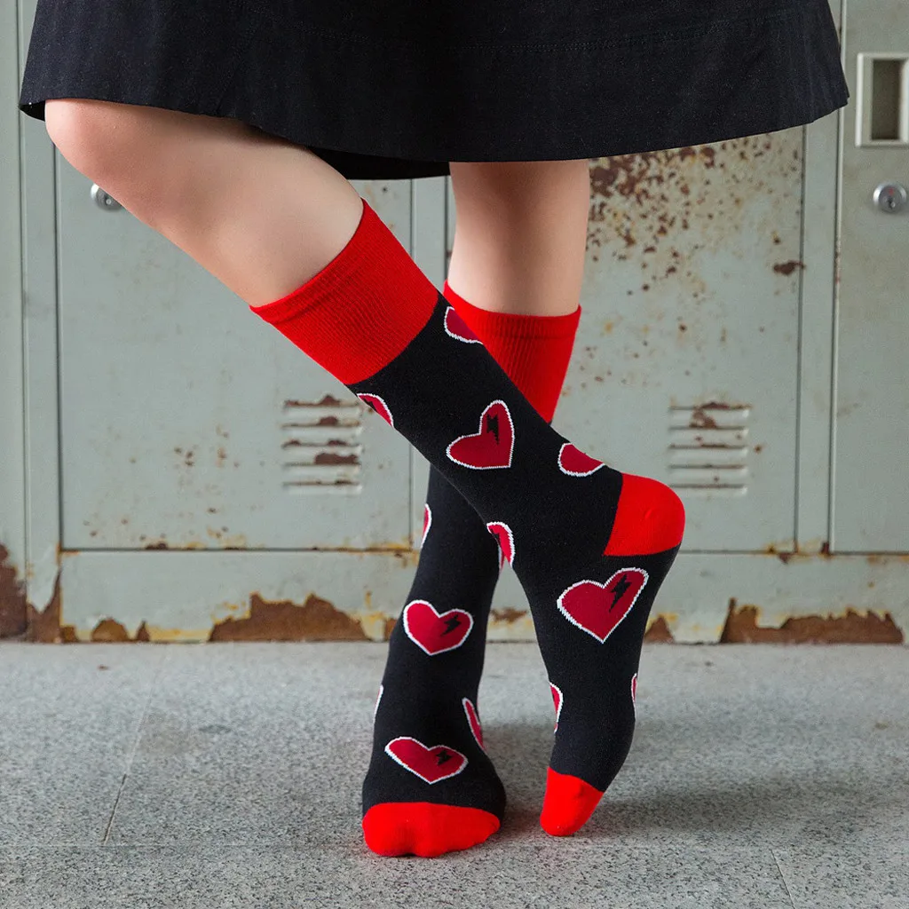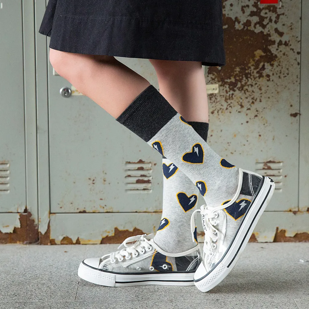 Модные хлопковые уличные носки без пятки с принтом сердца для женщин и девочек