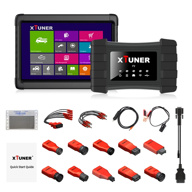 1 шт. x XTUNER T1 VCI 1 шт. x Основной Тестовый Кабель с разъемом OBDII 1 шт. x BE-Nz-14 разъем 1 шт. x Разъем CAT-9 1 шт. x разъем DENS O-12 1 шт. x разъем дизель-6 1 шт. x разъем дизель-9 1 шт. x ISU-ZU-3 разъем 1 шт. x ISU-ZU-20 разъем 1 шт. x IVE-CO-30 разъем 1 шт. x OBD-16 разъем 1 шт. x VO-LVO-8 разъем 1 шт. x универсальный кабель 1 шт. x Кабель для аккумулятора 1 шт. x Кабель для прикуривателя 1 шт. x USB кабель 1 шт. х Руководство по быстрому запуску 1 шт. x конверт с паролем