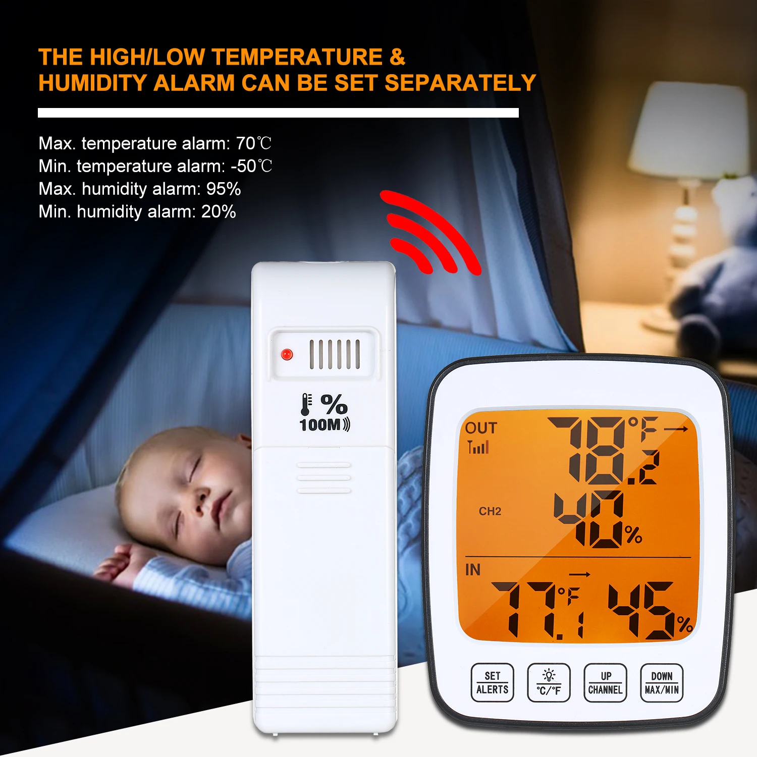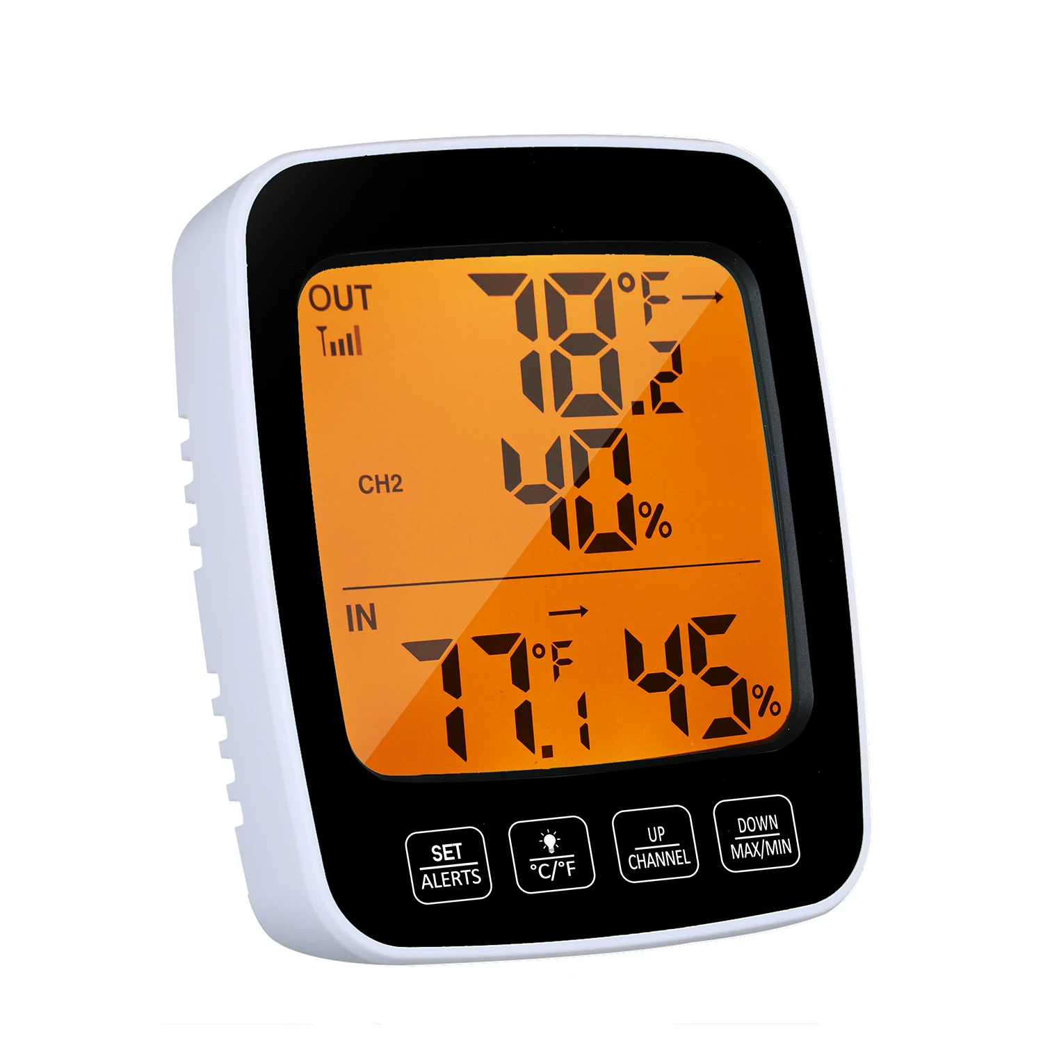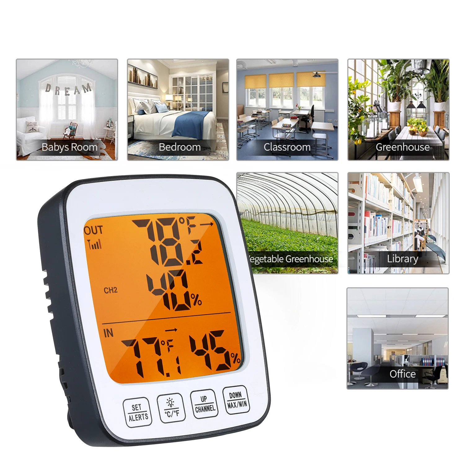 Простота в эксплуатации: разработан с 4 сенсорными кнопками для легкой работы, такими как включение/выключение подсветки, Переключение блока ℃/°F, регулировка вверх/вниз, настройка значения оповещения и т. Д.