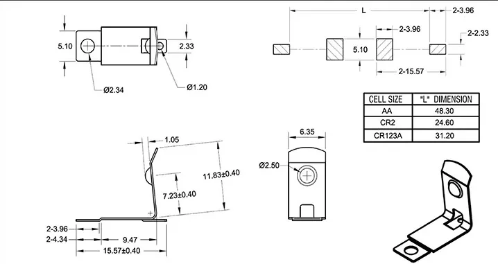 Suface крепление батарейный зажим AA CR2 а пружинная стальная поперечная часть 57 контактная Оловянная никелированная SMT доска
