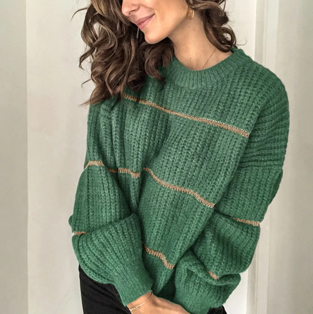 Autumn And Winter Women New Round Neck Color Matching Comfortable Loose Sweater
