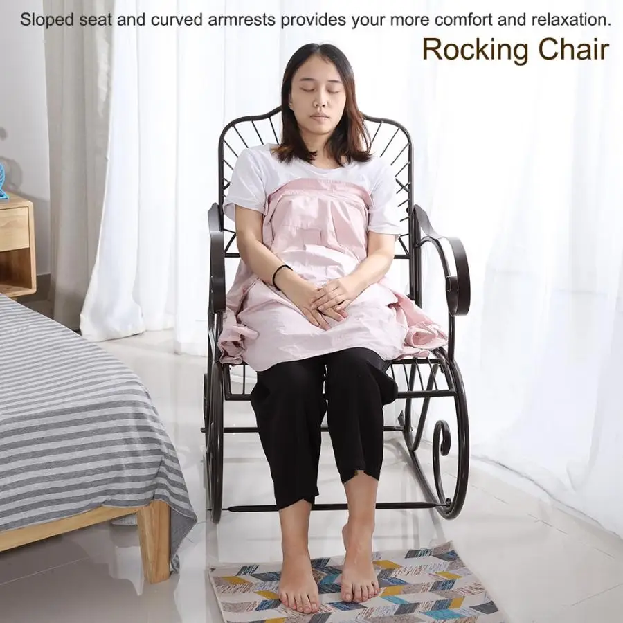 Изготовлен из высококачественного железного материала, прочный и прочный Все отделки нетоксичные, безопасные и экологически чистые. Элегантный цвет и стильный уникальный дизайн делают его отличным декором. Наклонные и изогнутые подлокотники обеспечивают комфорт и релаксацию. Широко используется во внутреннем дворике, на заднем дворе и т. д.