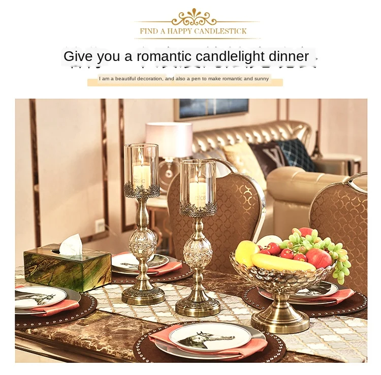 Роскошная американская Хрустальная стеклянная подставка для свечей настольные подсвечники, модель комнаты, отеля, ужина, металлический высококлассный Декор Candelabros FC288