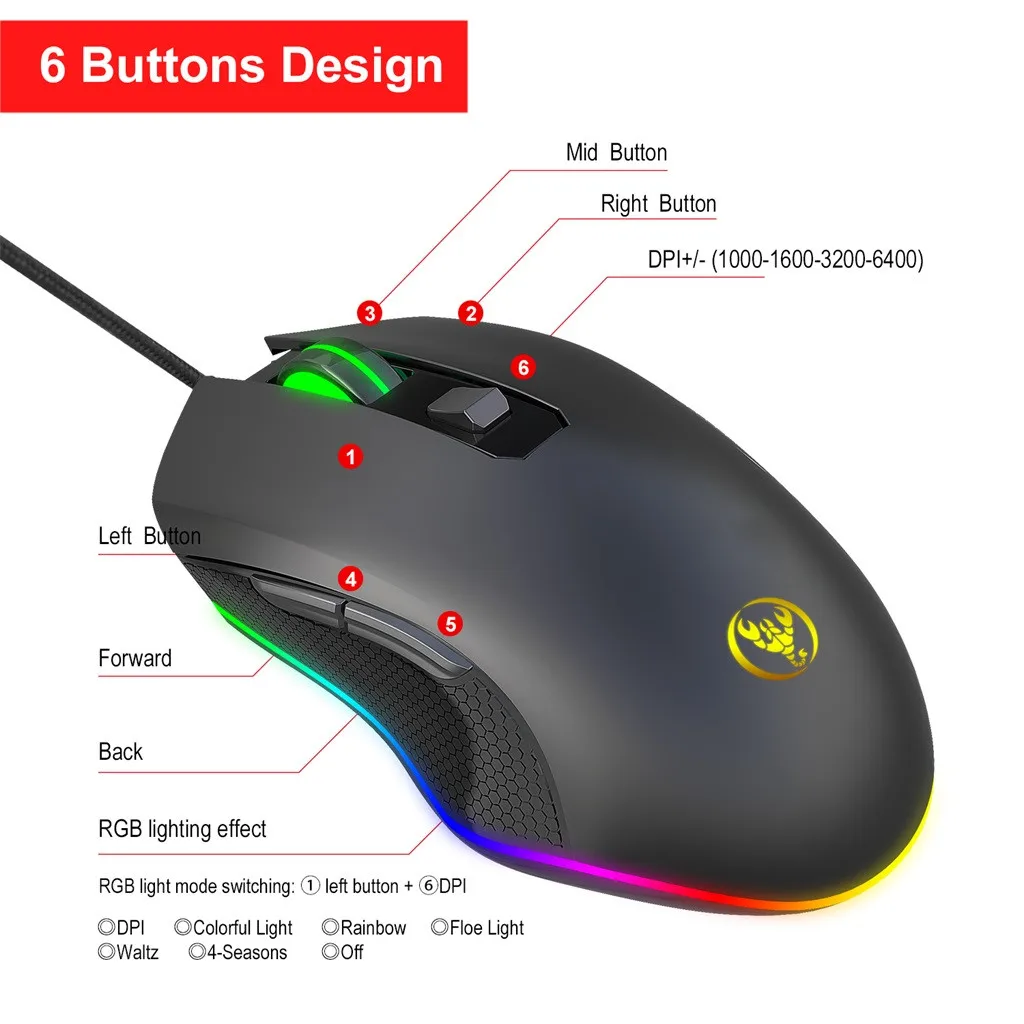 HXSJ A866 7 цветов, светодиодный USB Проводная мышь для компьютерных игр, профессиональная геймерская мышь