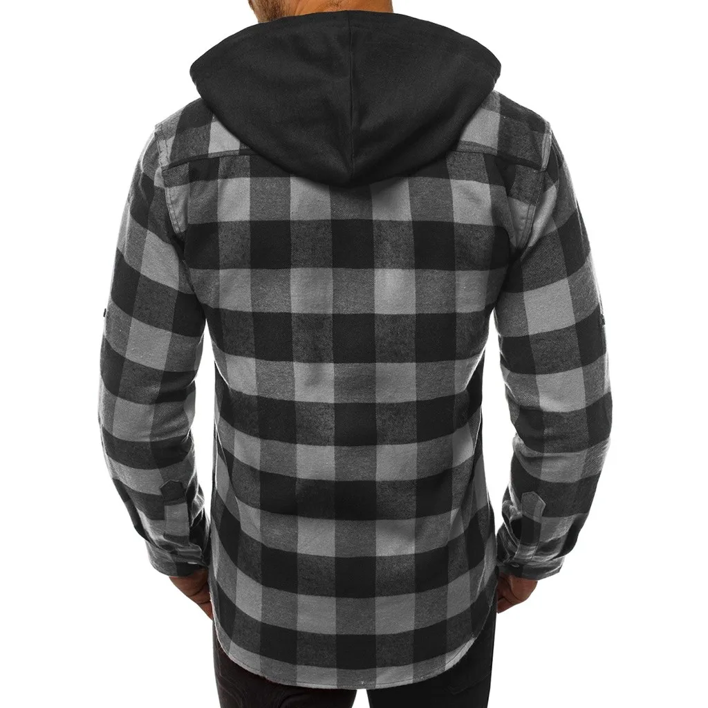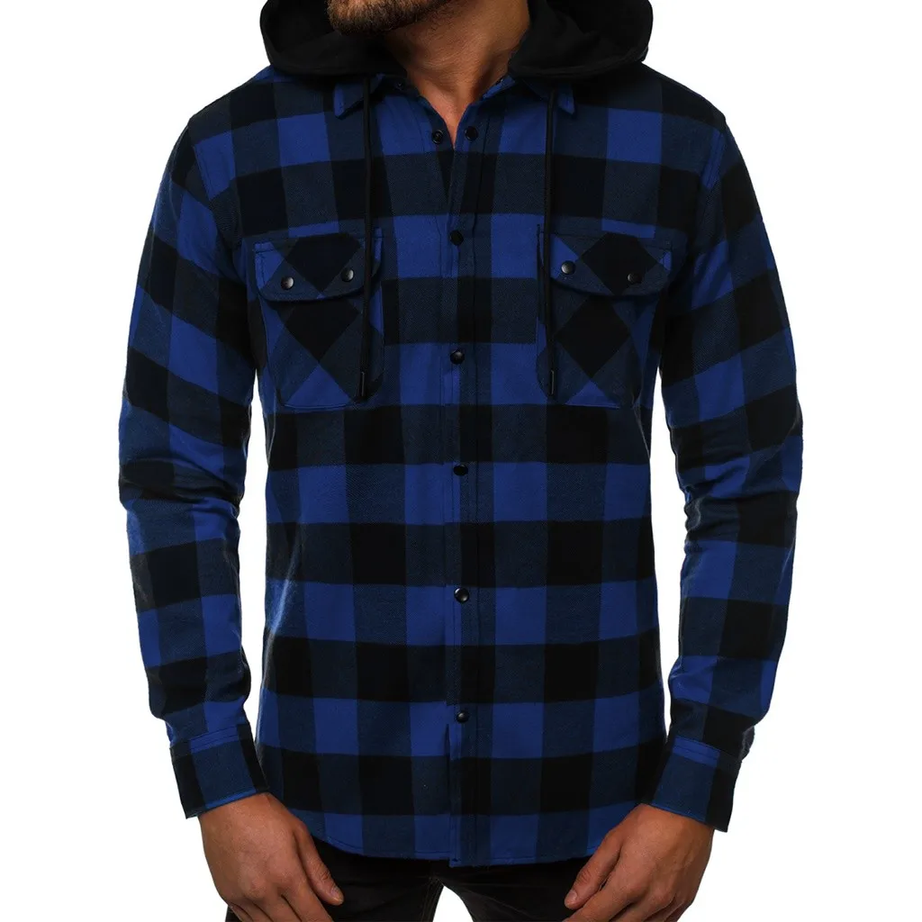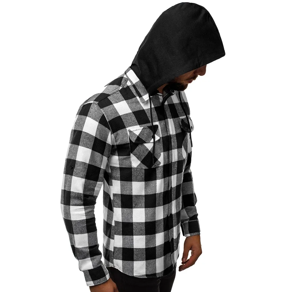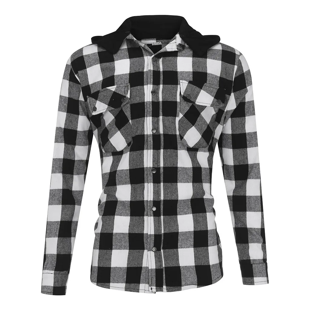 Мужская деловая рубашка с капюшоном в стиле ретро с длинными рукавами
