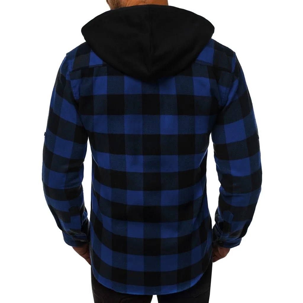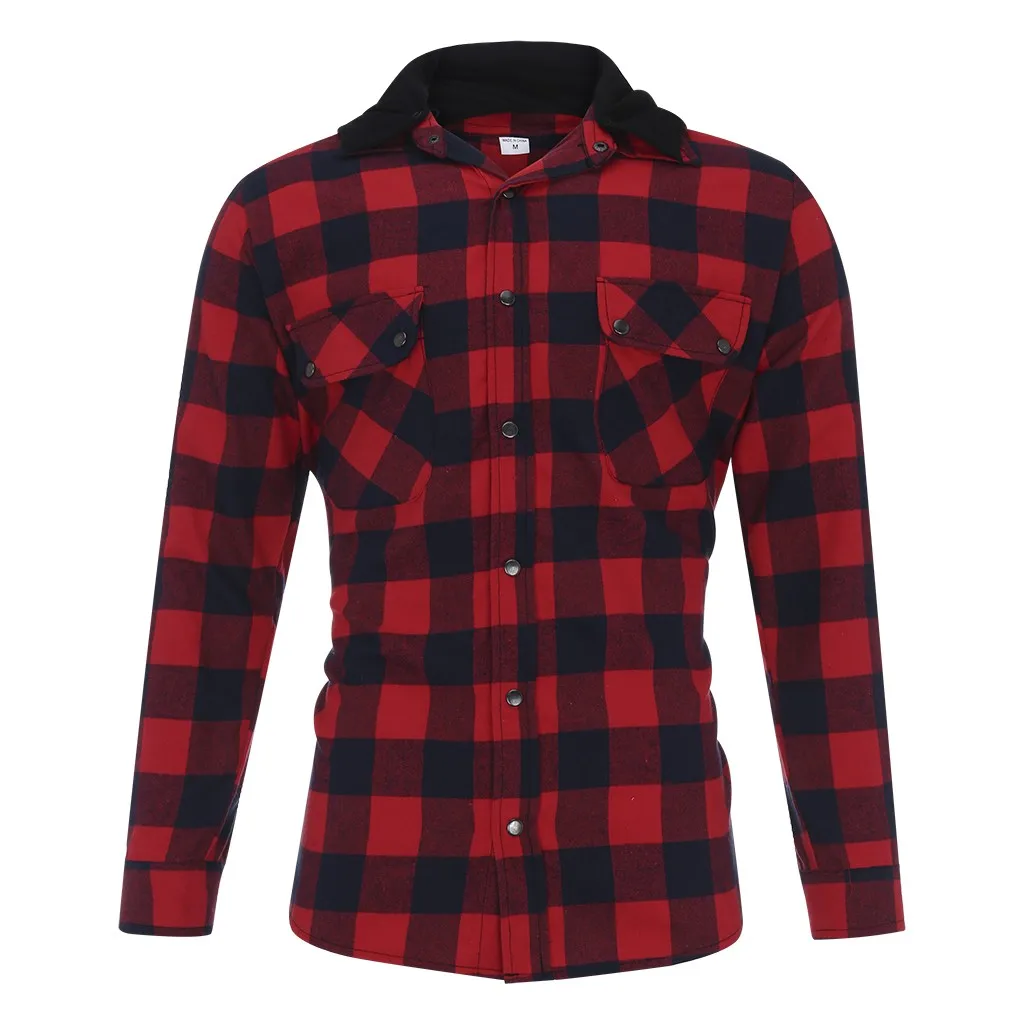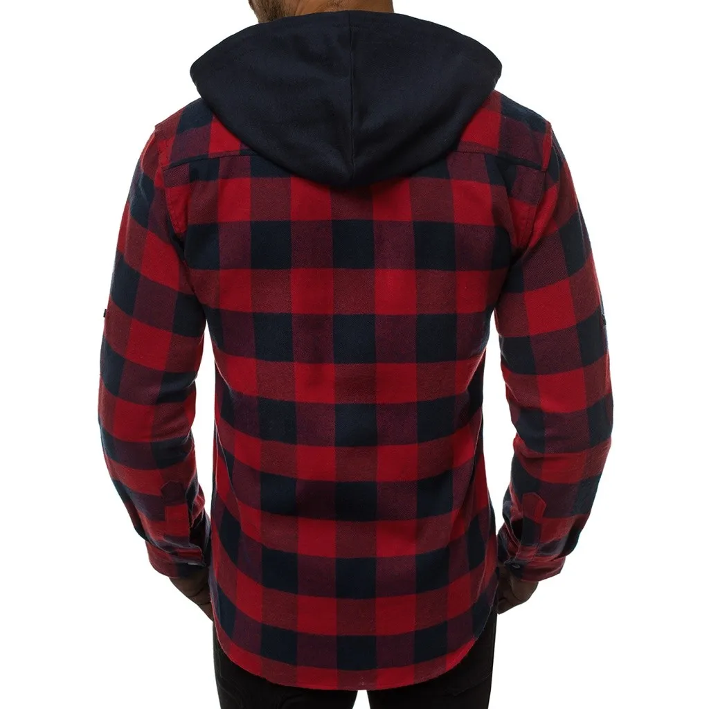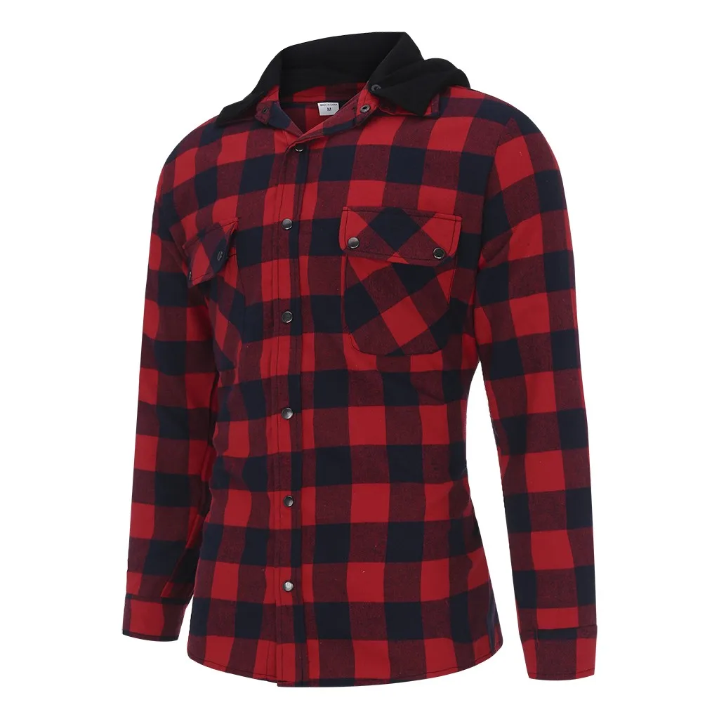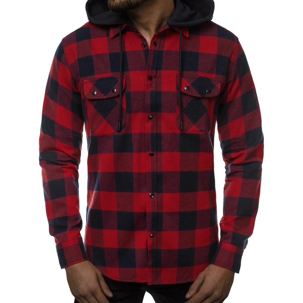 Мужская деловая рубашка с капюшоном в стиле ретро с длинными рукавами