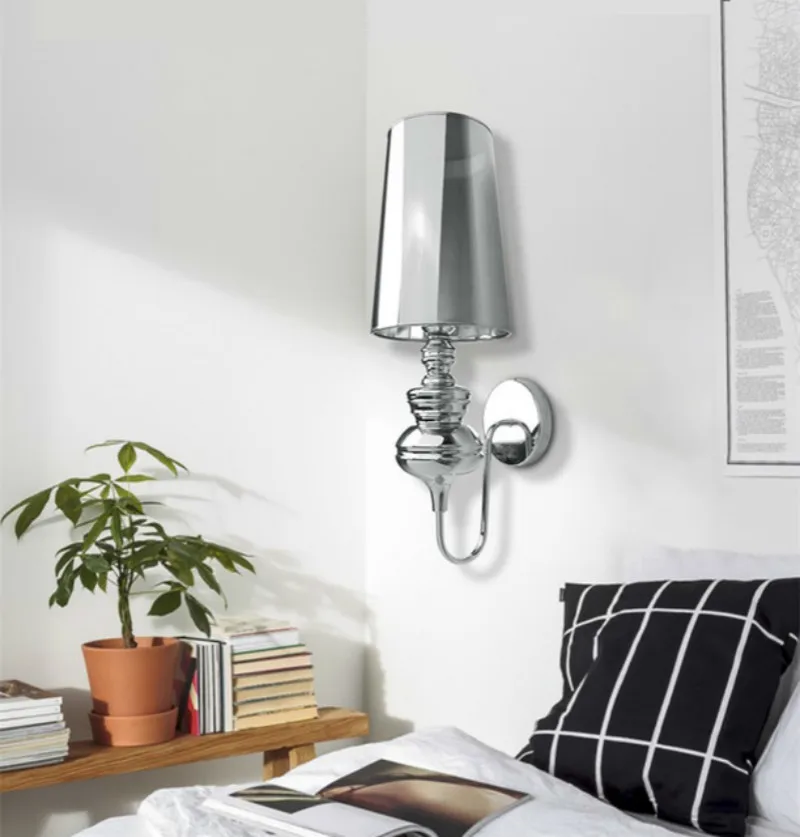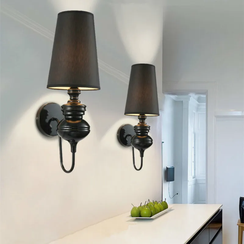 Современный светодиодный E27 Настенные светильники Глод/серебро/черная/Белая Ткань Тень Бра Гостиная Фойе Спальня отель светильник светильники