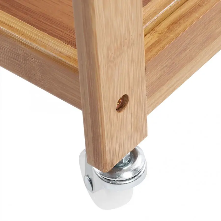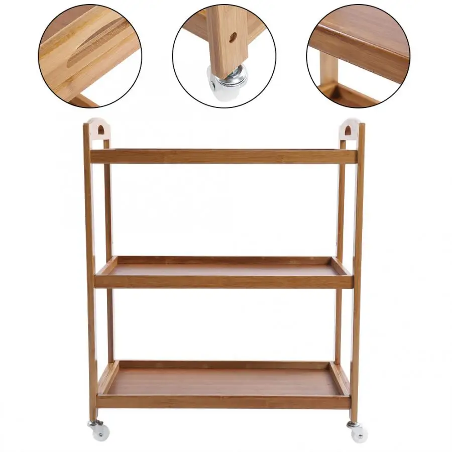 Простое и элегантное 3 яруса кружевных Сервировочная Тележка в бамбука. Тележка изготовлена из высококачественного материала для обеспечения безопасности. Пригодится в качестве расширенного пространства для вечеринок, кухонного острова или в качестве тележки для рецептов. Может также использоваться как сервировочная тележка, обслуживание в комнате, резьба или тележка для ухода. HigКачественные колеса, просты в использовании и перемещении.