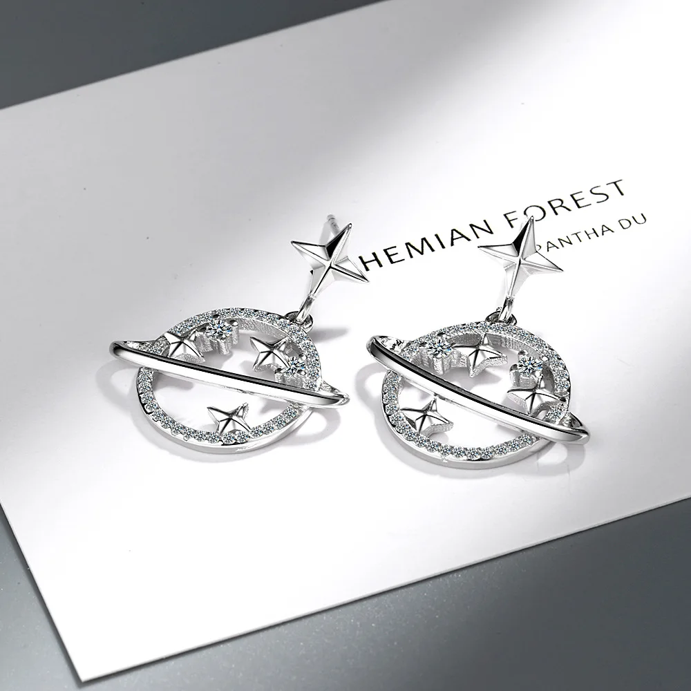 Изысканные серьги с кубическим цирконием и звездой планеты, ювелирные изделия из стерлингового серебра 925 пробы, корейские серьги-подвески для женщин и девушек, brincos bijoux Материал: серебро 925 пробы Состояние: 100% новый бренд Повод: вечерние/Свадебные/Помолвочные/День рождения/День Святого Валентина/День Матери Размер подвески: как показано на рисунке