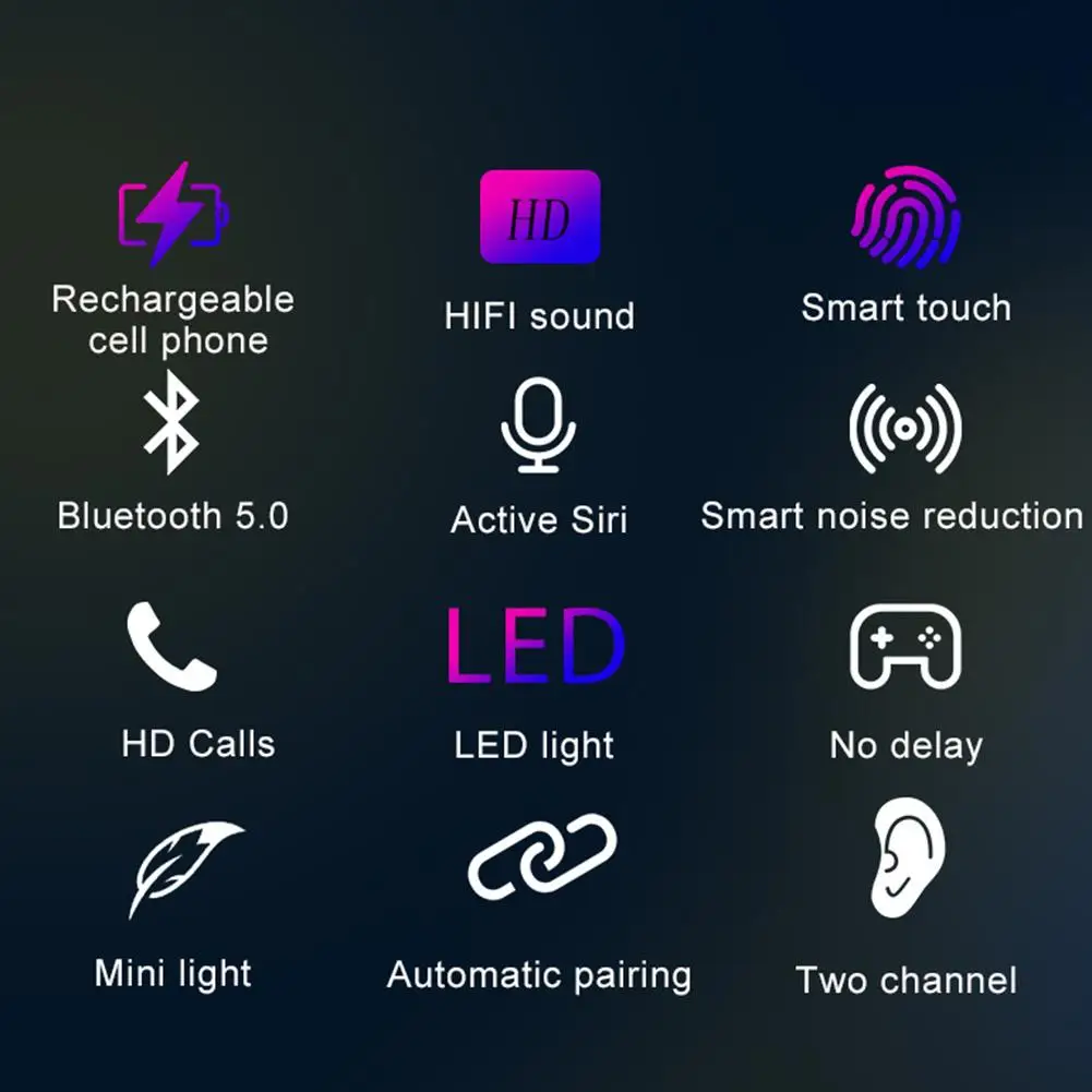 1. Версия Bluetooth: чип Bluetooth 5,0, Автоматическое Сопряжение с запуском, Встроенный активный режим шумоподавления, вызов высокой четкости, большая емкость и длительный срок службы батареи, настоящая Беспроводная bluetooth-гарнитура. Нет задержки в воспроизведении музыки или игре, плавное качество звука.Руководство * 1